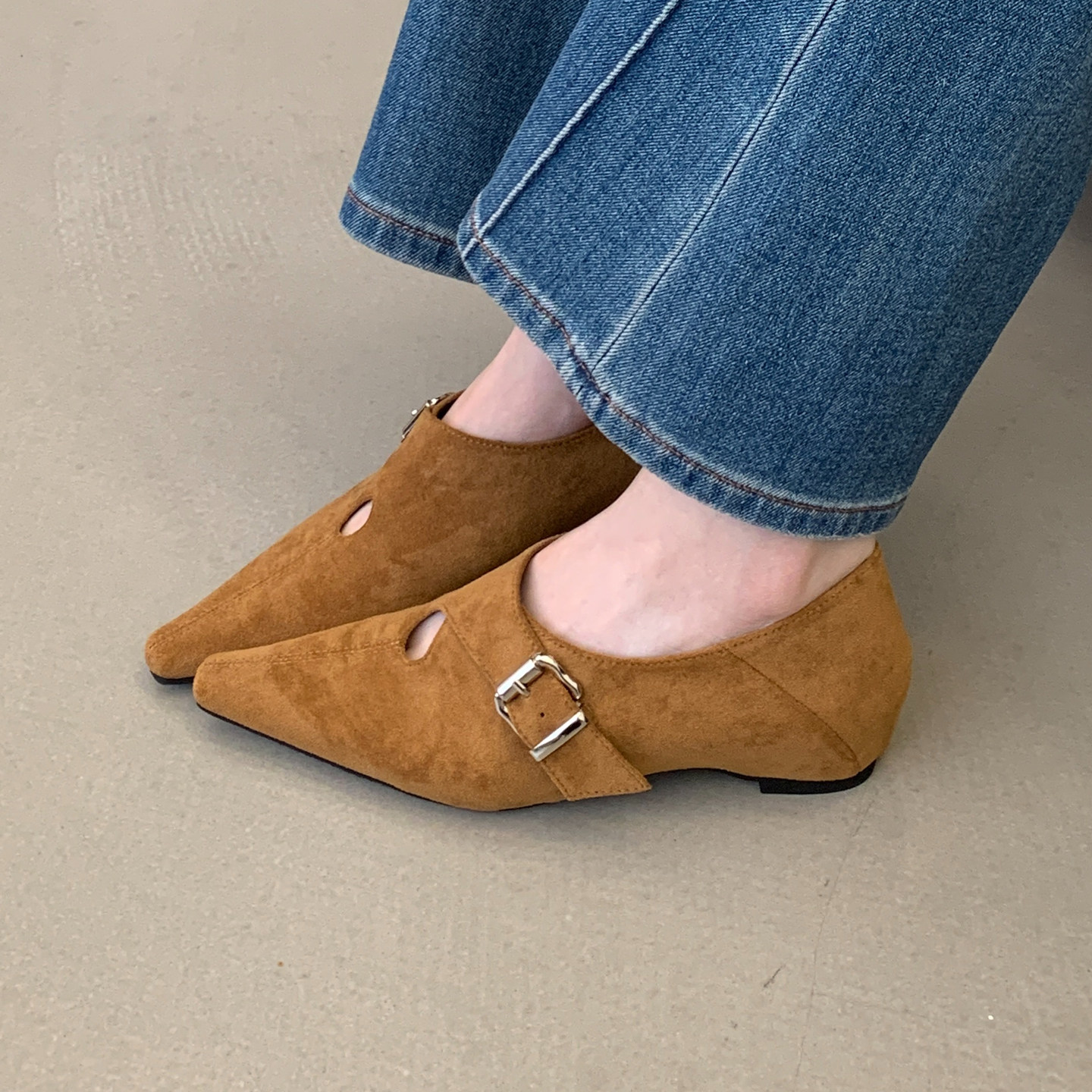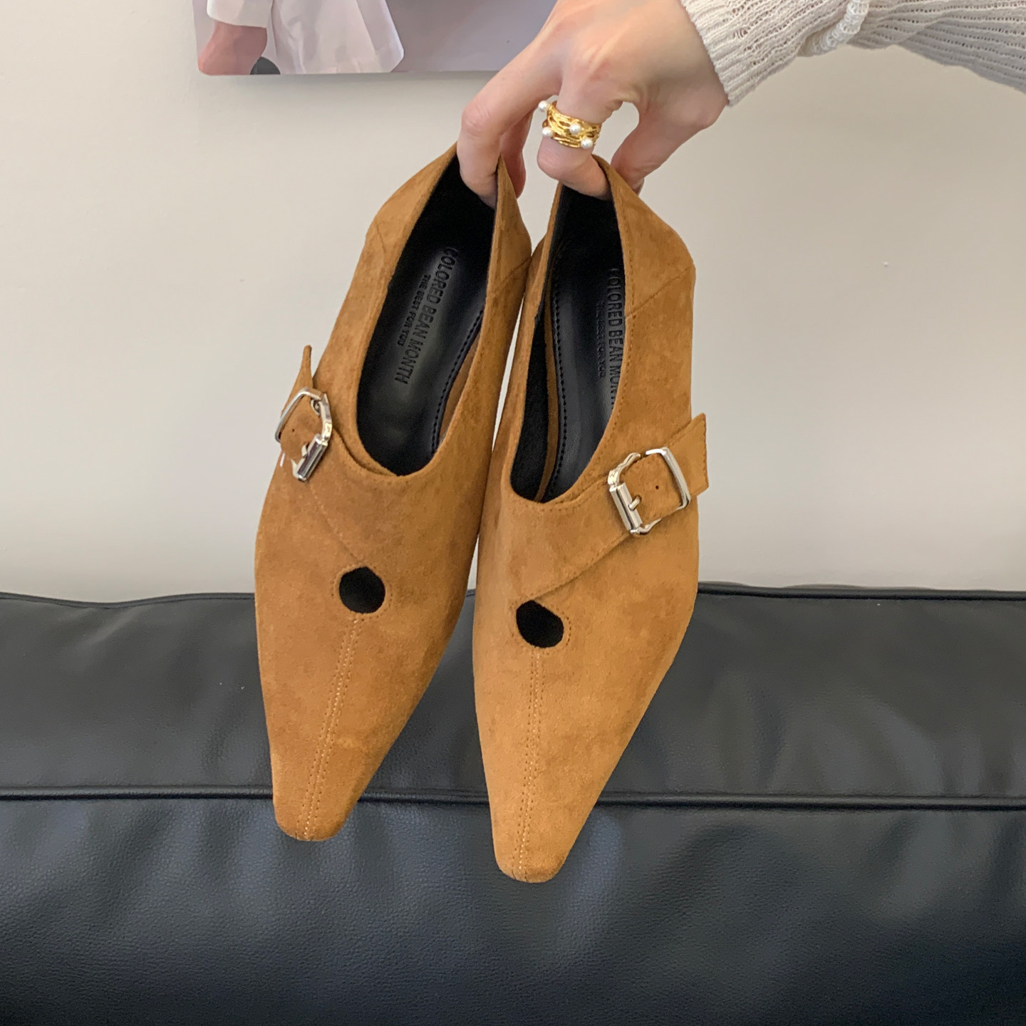 尖头粗跟中跟单鞋法式鞋四季女鞋