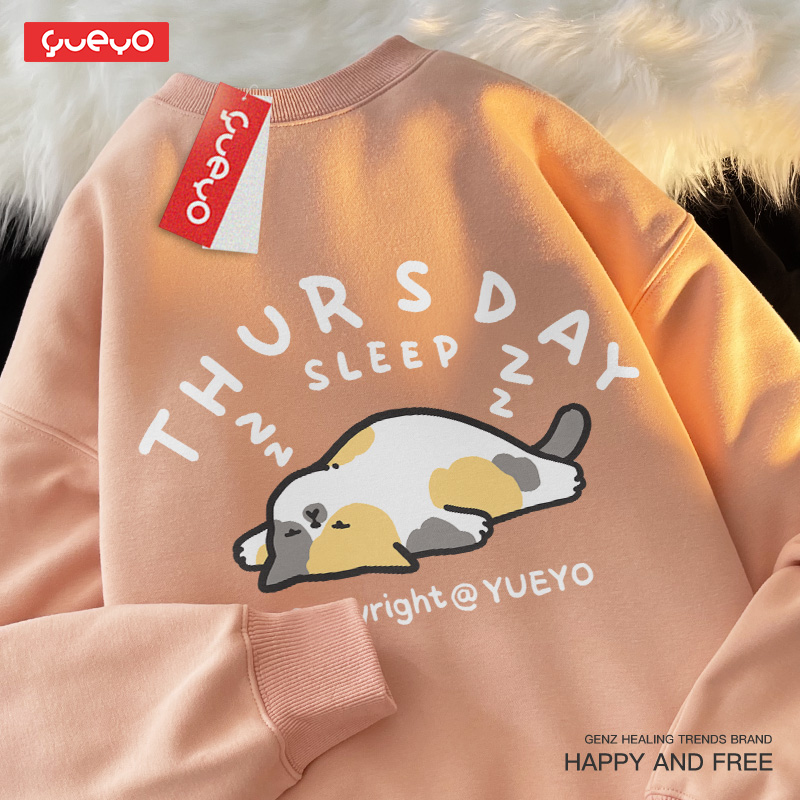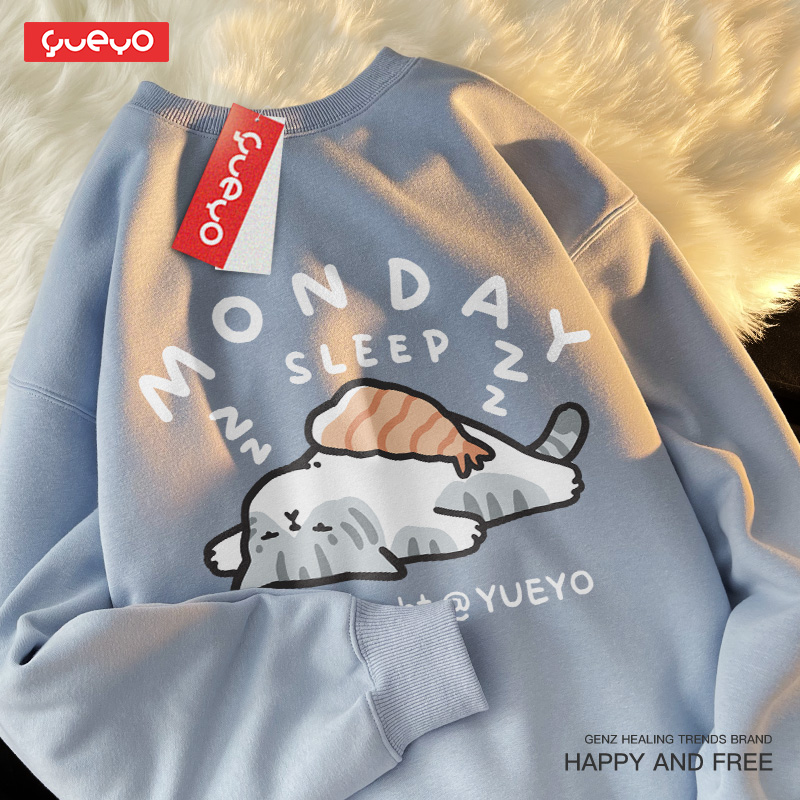 悦游 monday sleep 圆领套头加绒卫衣男春秋外套猫周一睡觉潮流
