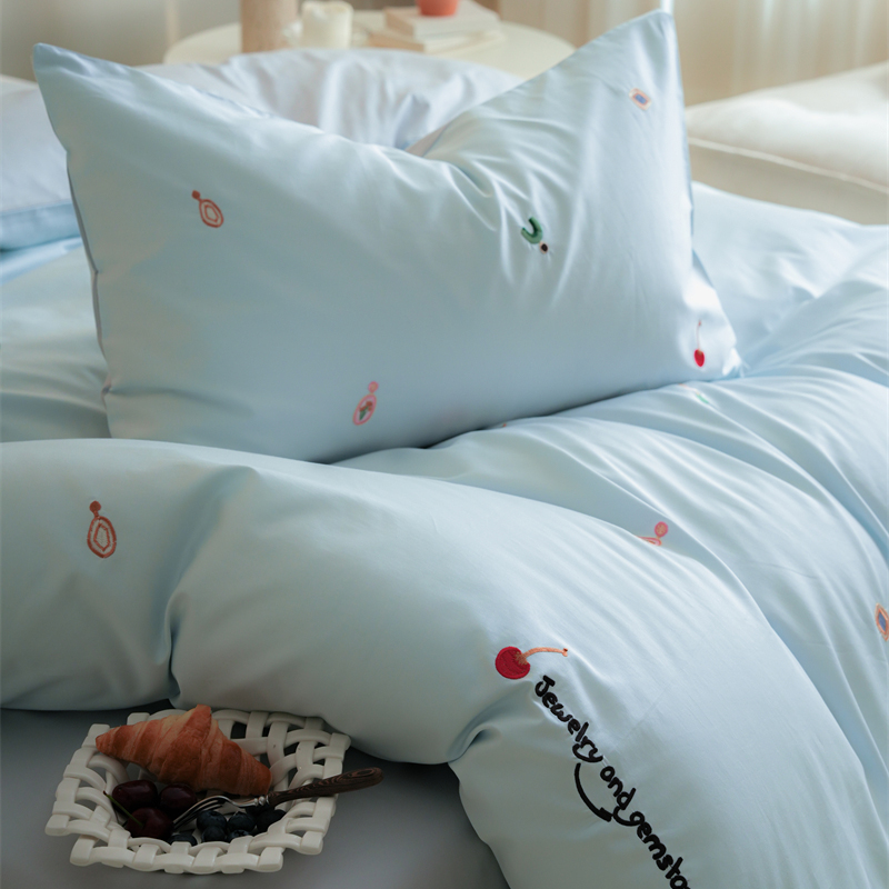 100s高支长绒棉刺绣樱桃甜心床上四件套1.5m1.8全棉床单被套丝滑