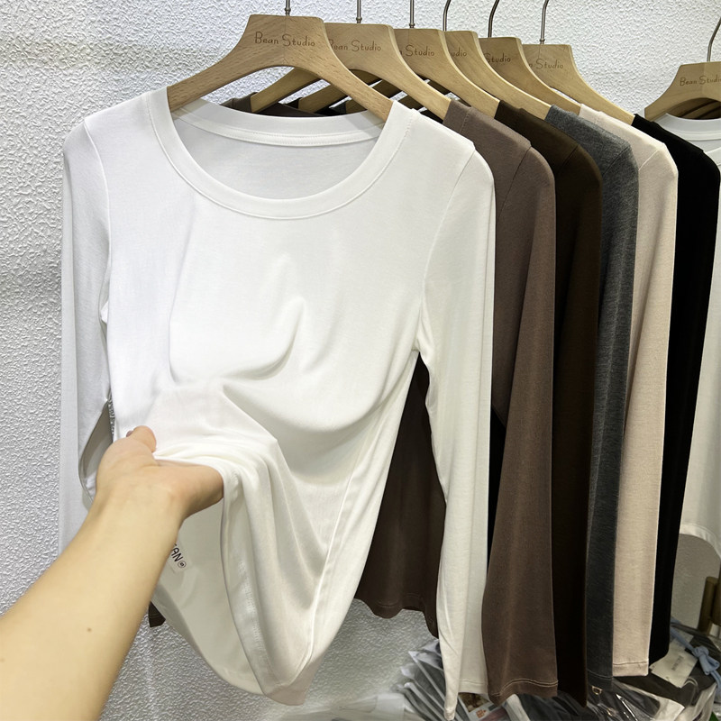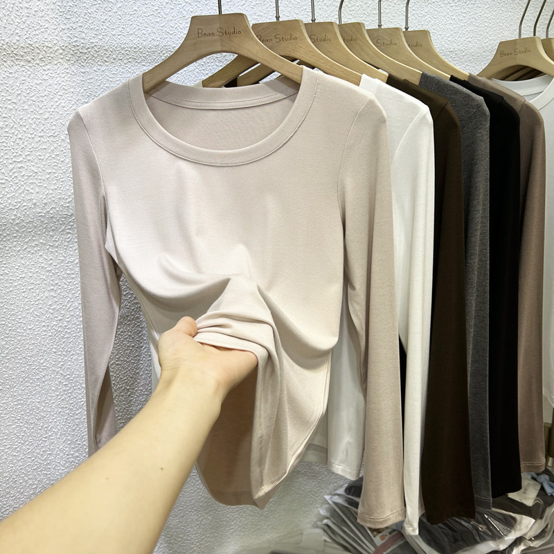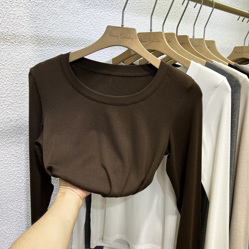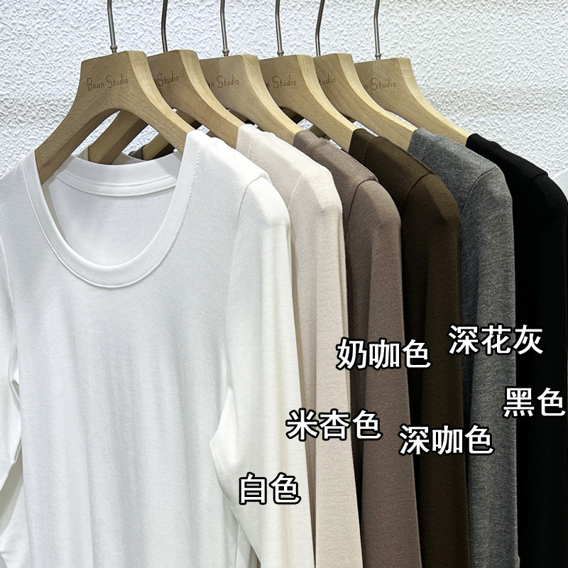2025秋冬薄莫代尔面膜T恤女长袖内搭打底衫纯色百搭修身圆领上衣