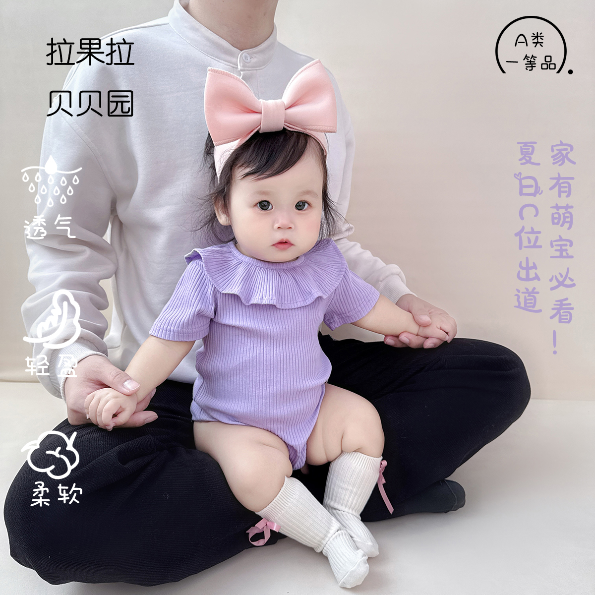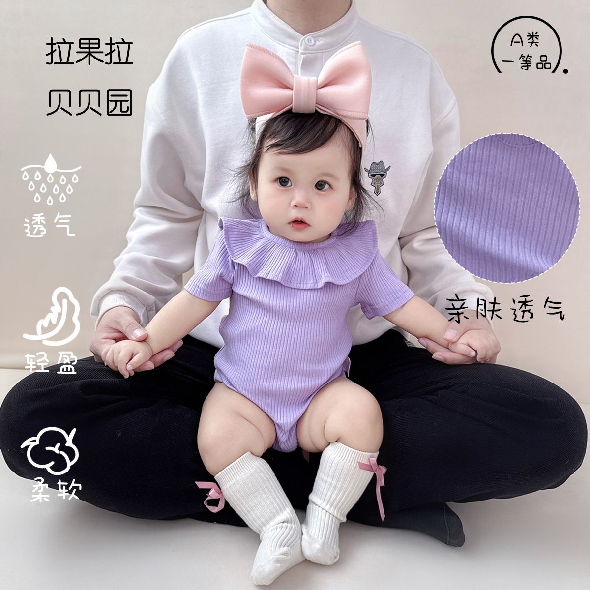 婴儿夏装2025新款女宝宝公主包屁衣短袖哈衣新生儿衣服紫色连身衣
