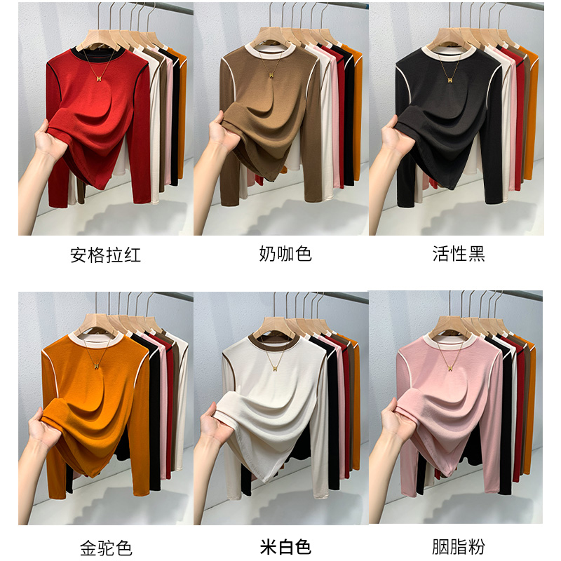 猫人羊绒蛋白2025早秋新款圆领打底衫女秋冬外穿拼色长袖肌底衣