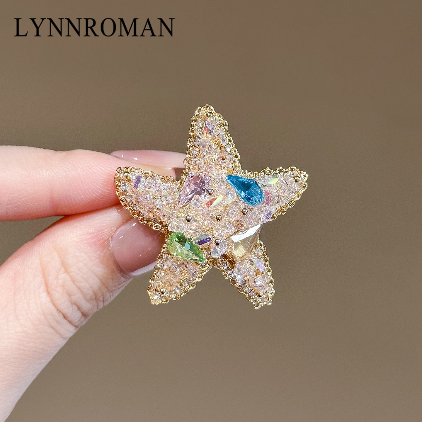 LYNNROMAN彩色水晶海星胸针女时尚闪亮配饰别针2025新款气质胸花