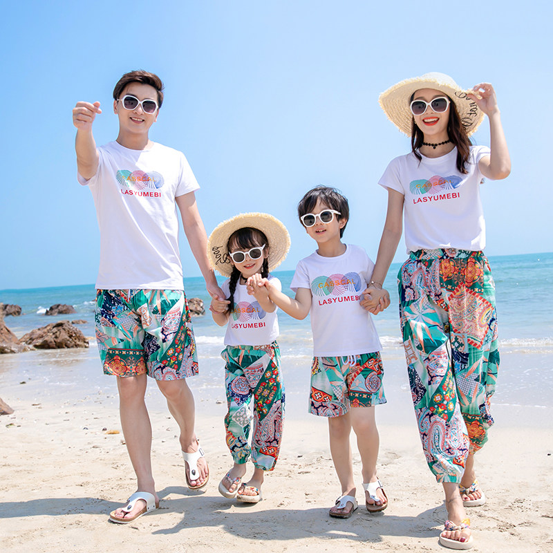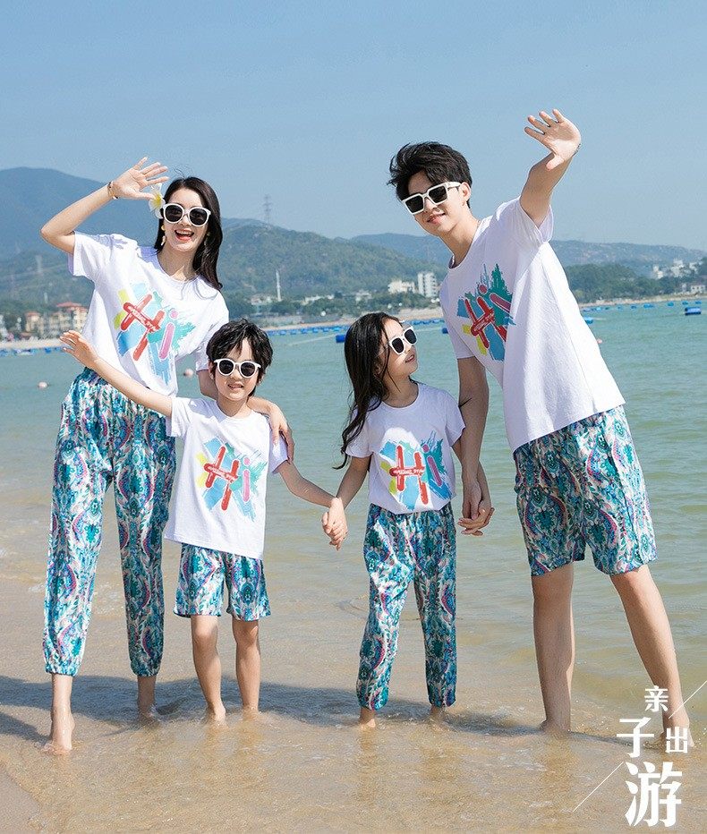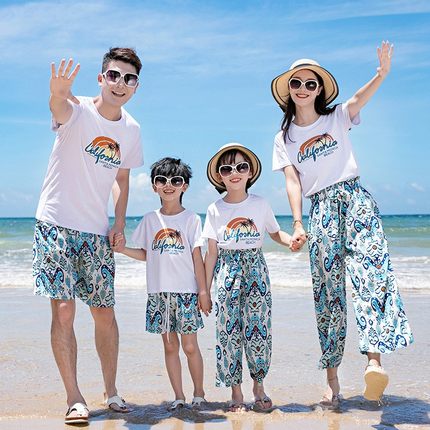 亲子装2025新款夏季一家三口四口洋气旅游海边沙滩母子母女套装