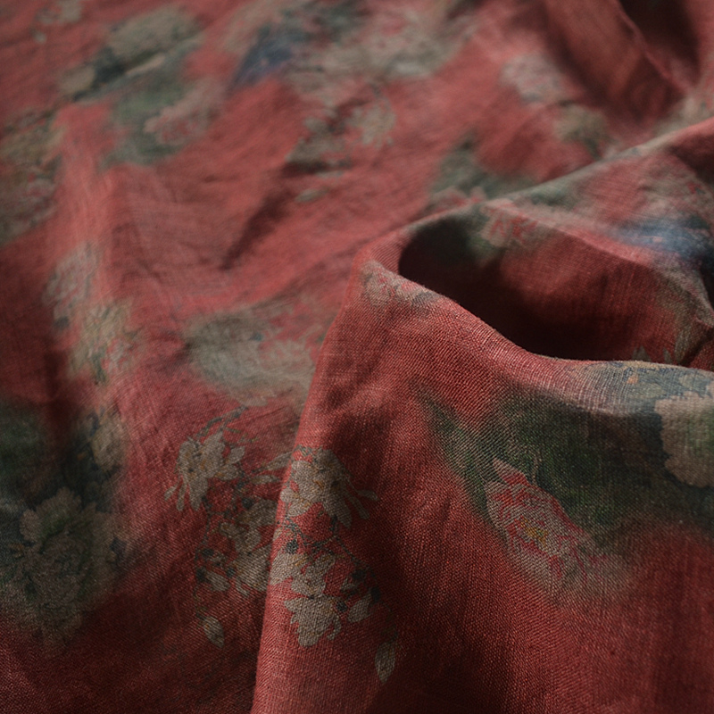 21支水洗纯亚麻印花棉麻布料民族风连衣裙袍子衬衫旗袍服装面料