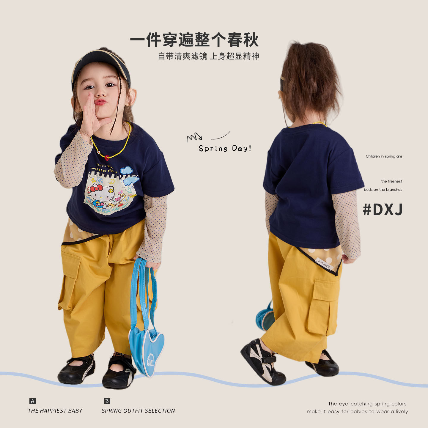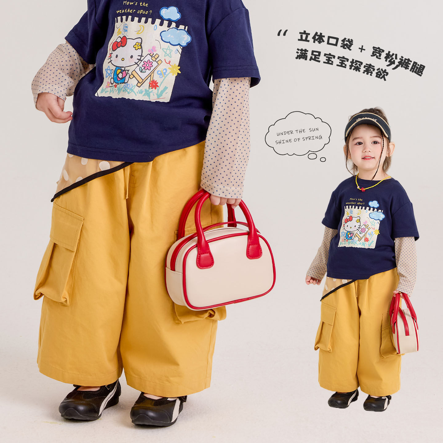 大小卷女童工装裤春秋2026新款韩版洋气直筒裤儿童春装休闲长裤