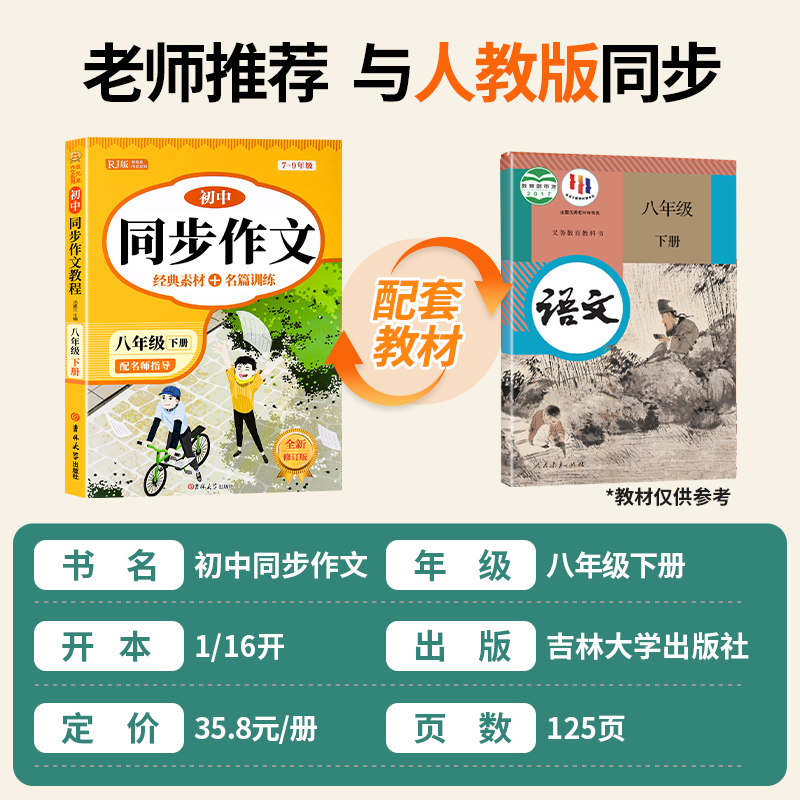 2026新版 八年级下册同步作文人教版 初中生初二8上下册语文教辅资料满分作文书大全初中优秀高分范文素材精选部编教材全解全套