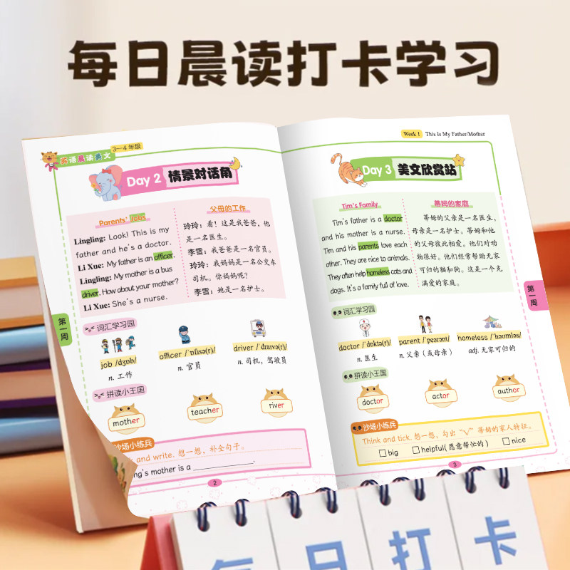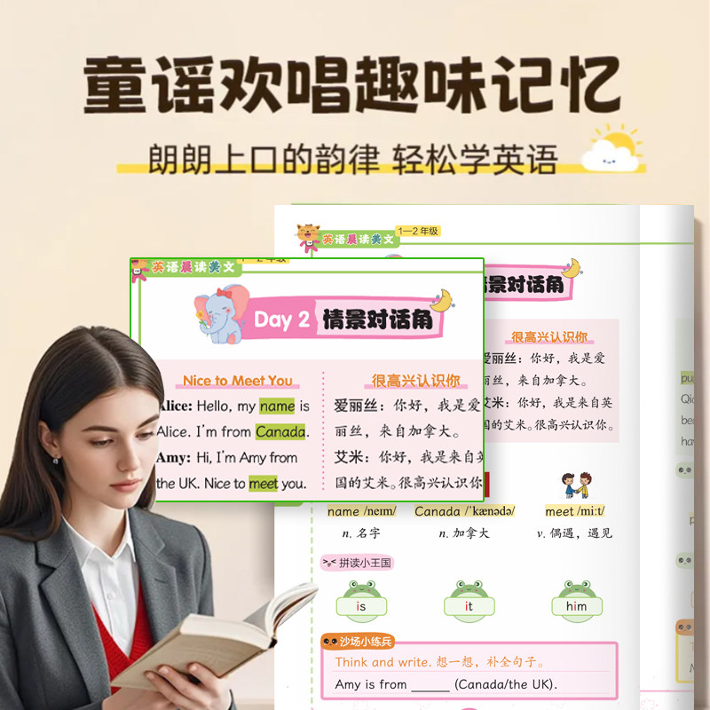 小学生每日英语晨读美文绘本小学一二三四五六年级英语新教材自然拼读同步人教版英语阅读课外书每日一读晨诵暮读练习本有声伴读