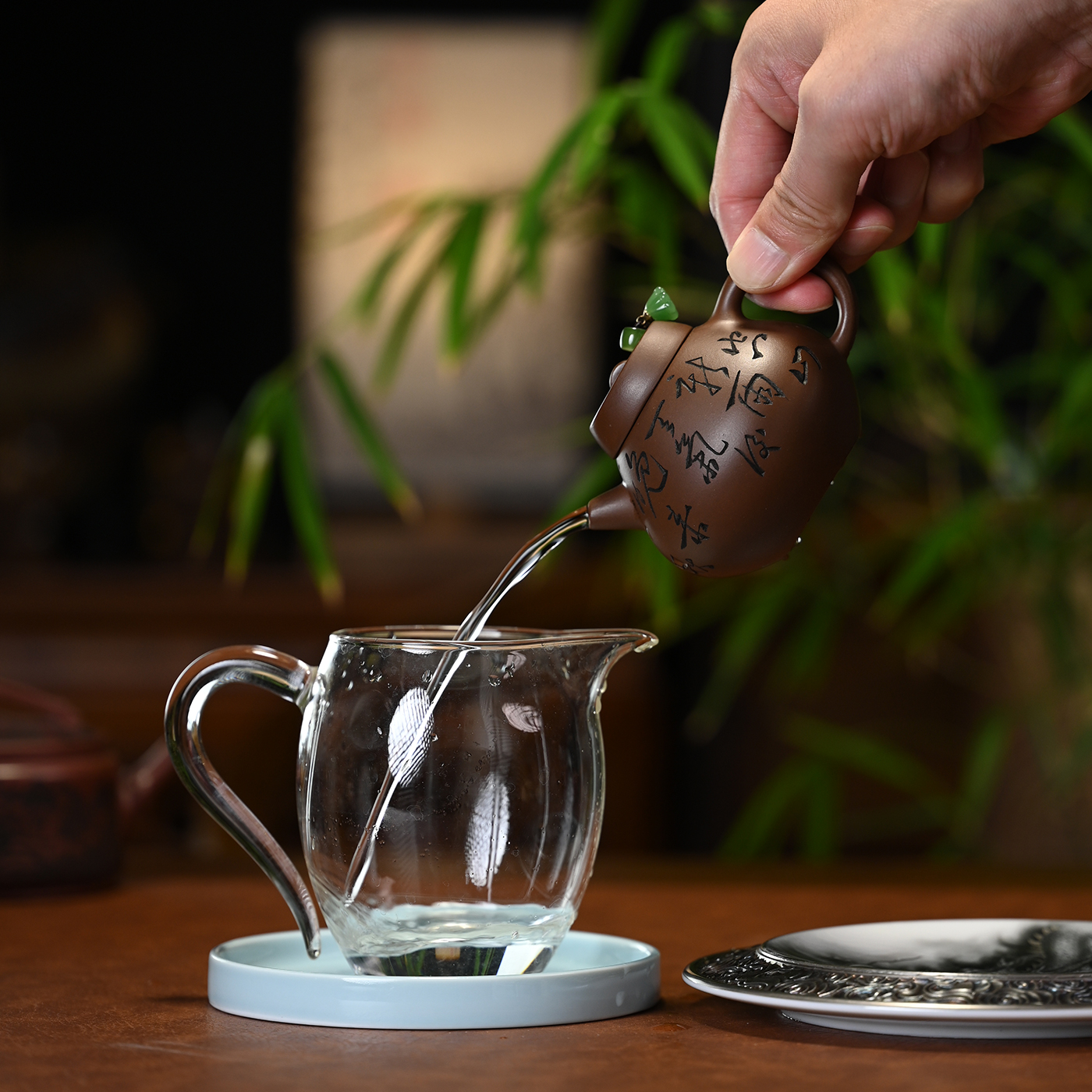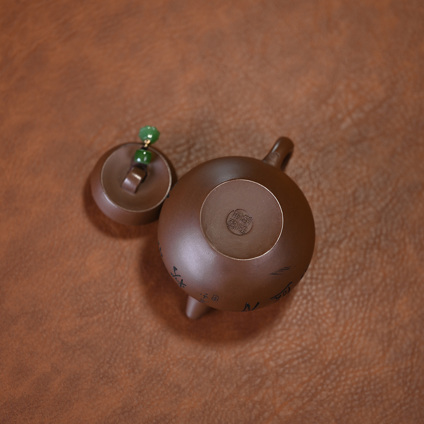 宜兴紫砂壶原矿文革紫泥井象壶全手工刻绘家用功夫茶具茶器 150ml