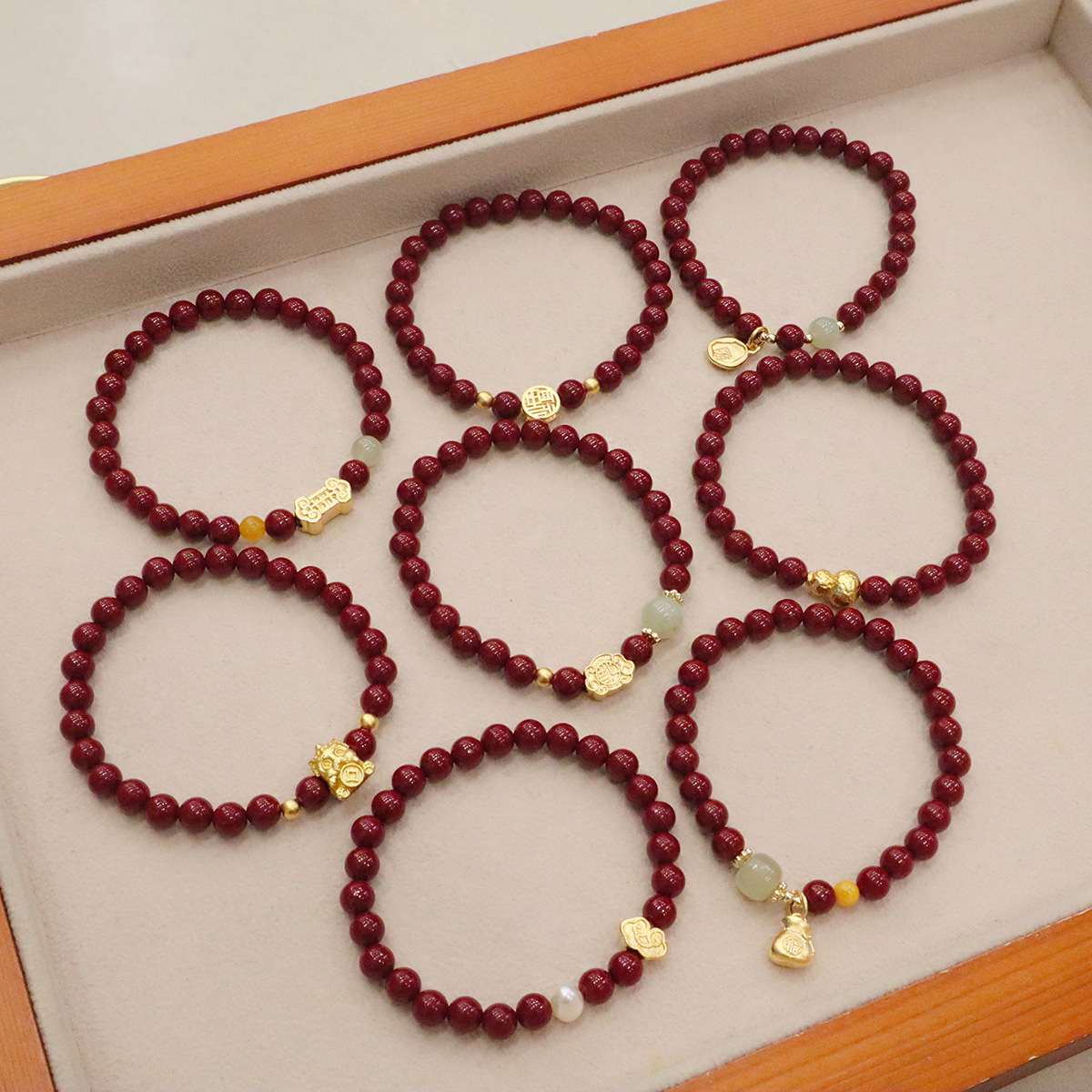 日本品质高含量90紫金砂朱砂手链女款和田玉新中式手串手饰串珠饰