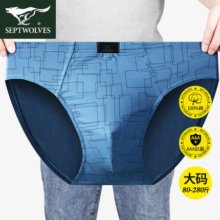 七匹狼三角内裤男士纯棉胖子肥佬短裤头宽松加肥加大码男款三角裤