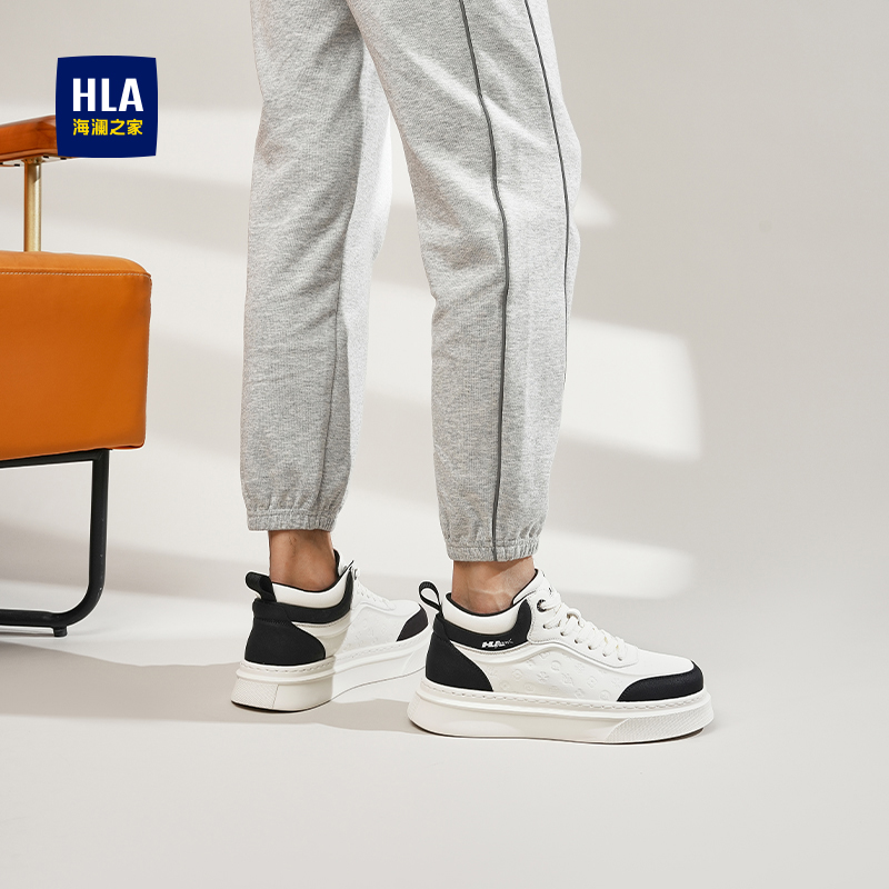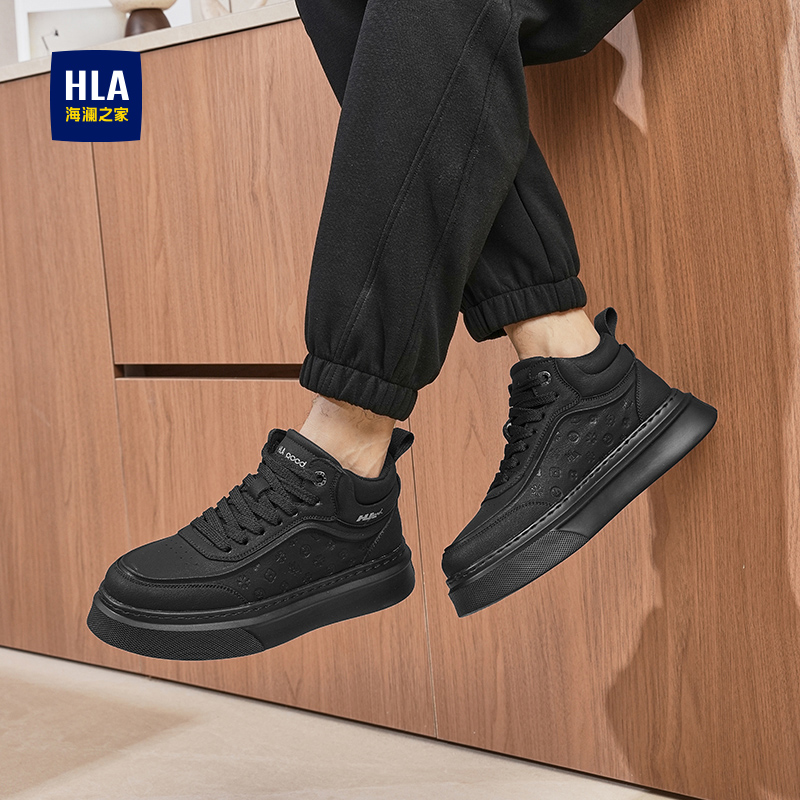 海澜之家男鞋2025新款秋季中帮休闲板鞋青少年全黑色运动百搭潮鞋