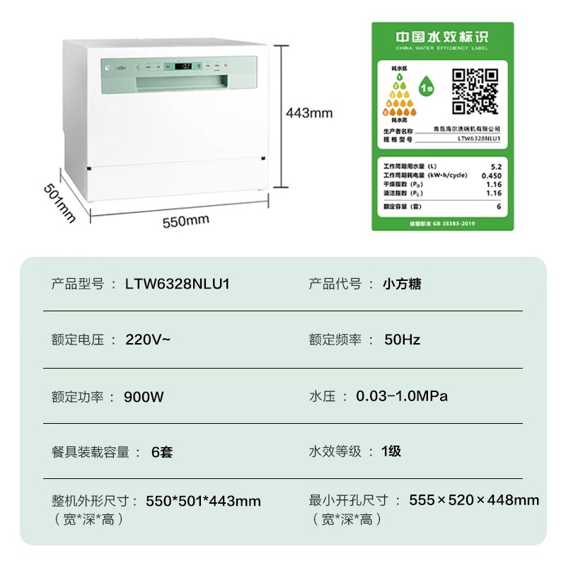 海尔洗碗机台式全自动家用免安装变频高温除菌小方糖LTW6328NLU1