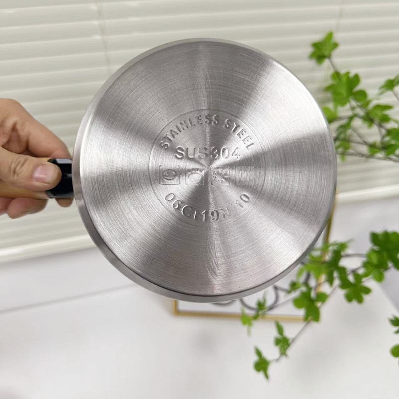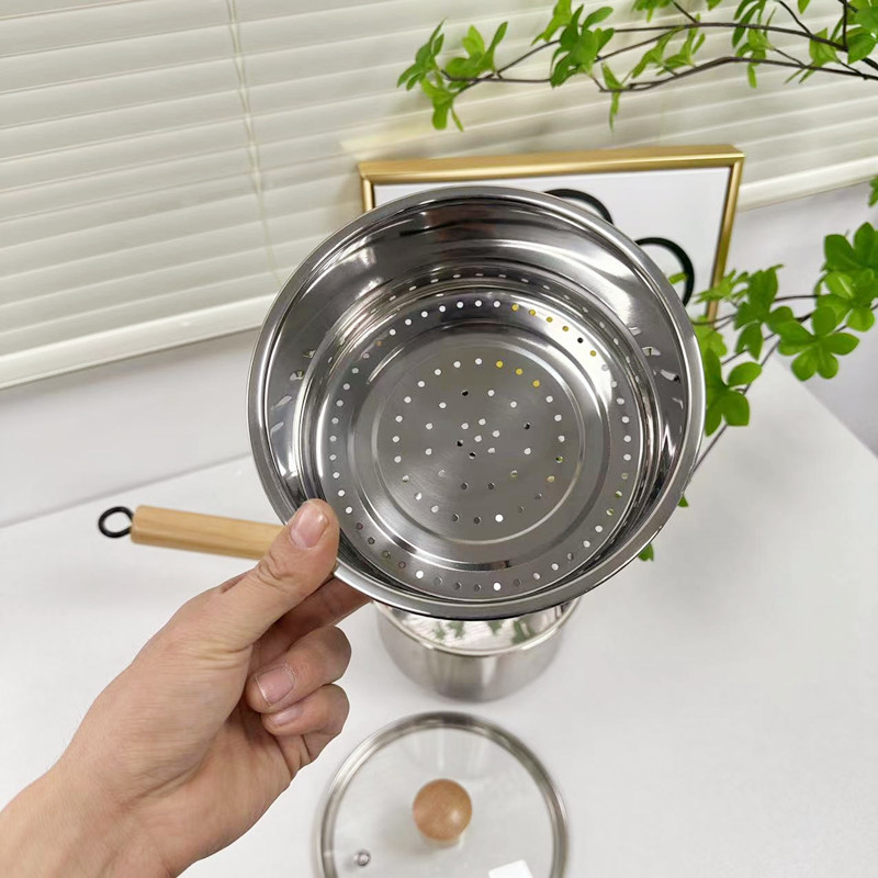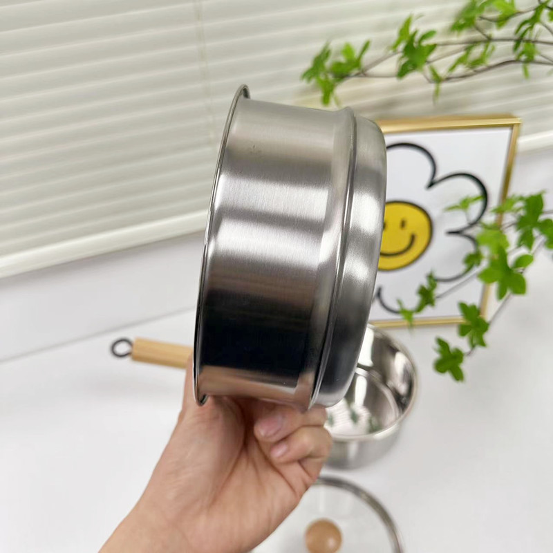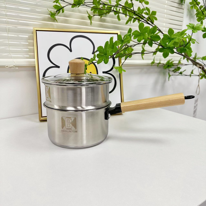 加厚304不锈钢复底汤锅木柄奶锅宝宝辅食锅家用双层蒸煮锅礼品锅