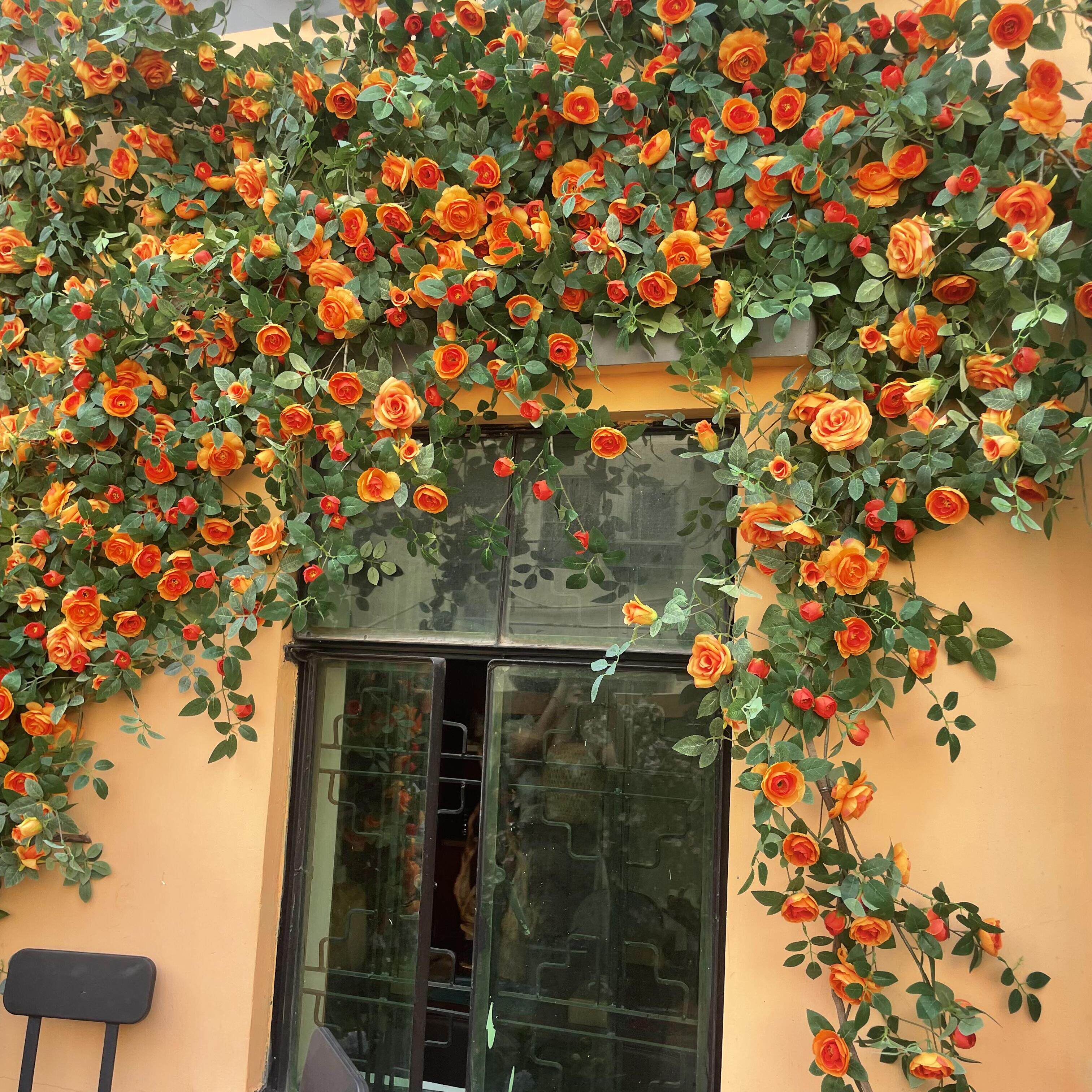 仿真玫瑰花网红花墙瀑布墙壁假花管道装饰门头墙面橱窗户玻璃造景