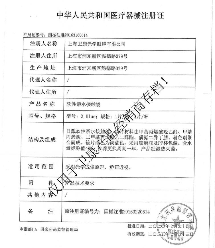卫康隐形眼镜x-blue隐形近视眼镜年抛1片装高度数透明片官网正品