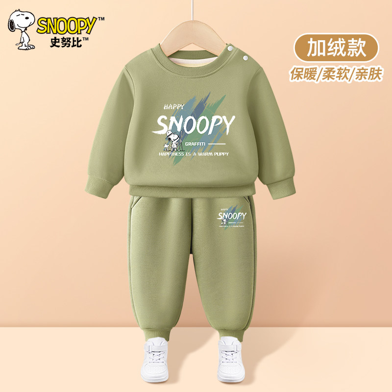 史努比儿童套装男童加绒卫衣秋冬季2026新款宝宝冬装婴儿运动衣服