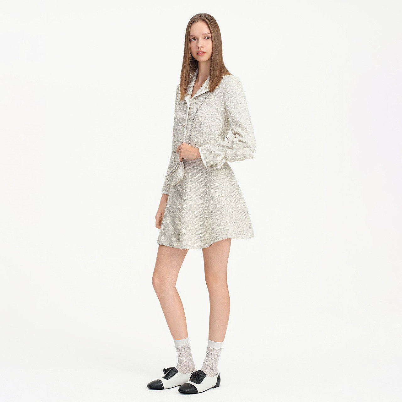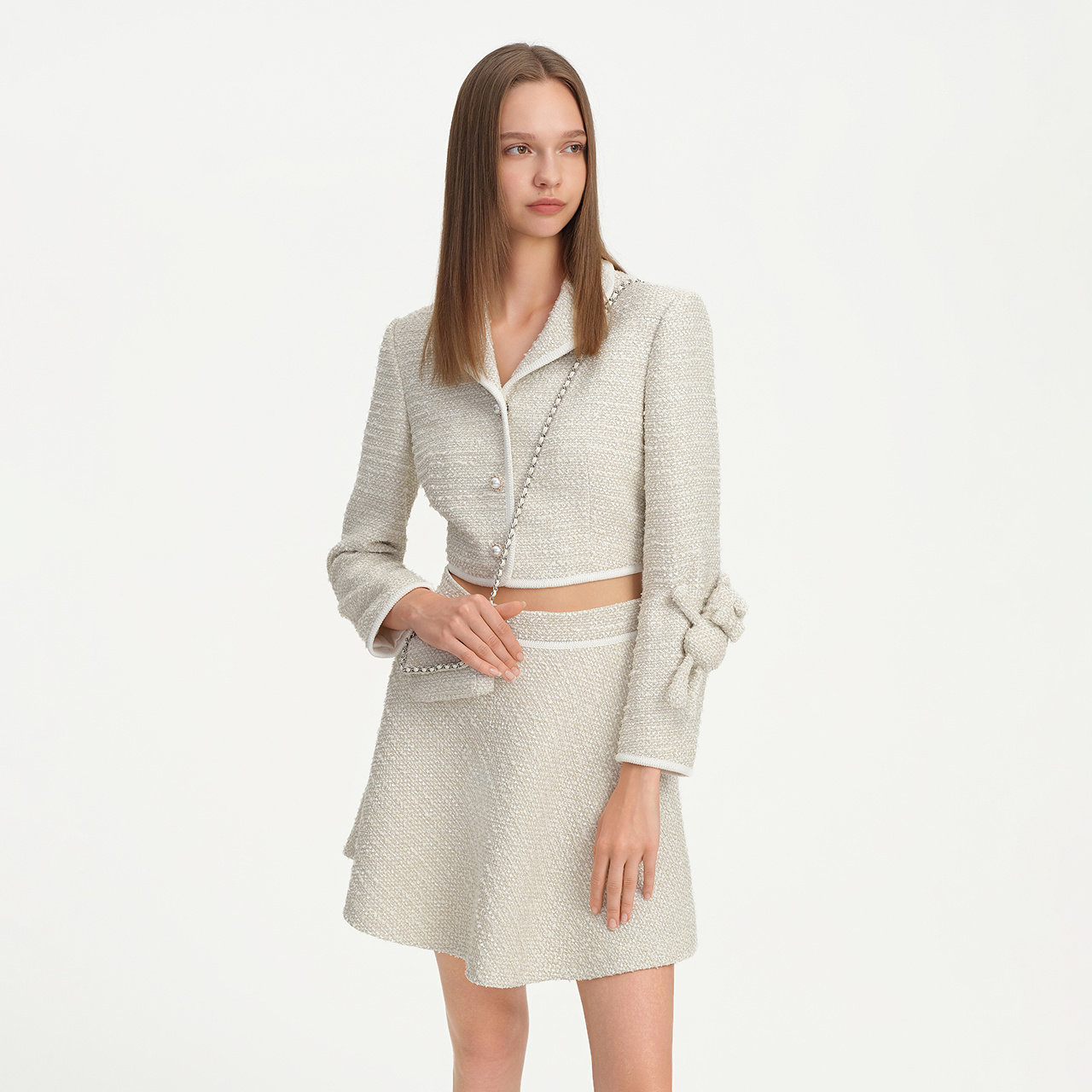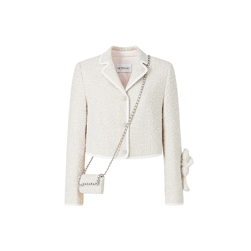 商场同款 摩萨克春编织肌理粗花呢小香风短款翻领外套女