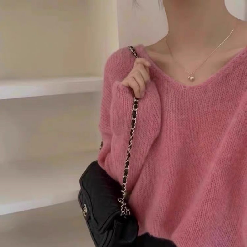 羊范韩系温柔风~100%纯羊毛针织衫女V领秋冬款纯色内搭慵懒风上衣