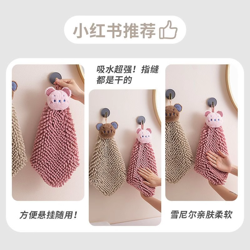 擦手毛巾挂式可爱雪尼尔卫生间儿童洗手吸水不掉毛加厚手帕擦手巾