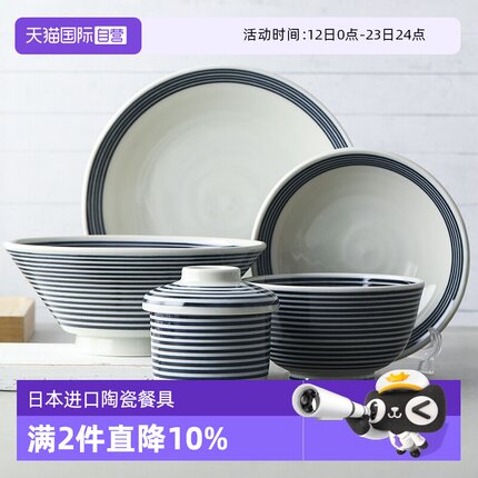【自营】美浓烧日本进口陶瓷蓝驹系列餐具饭碗面碗深盘汤盘盘子