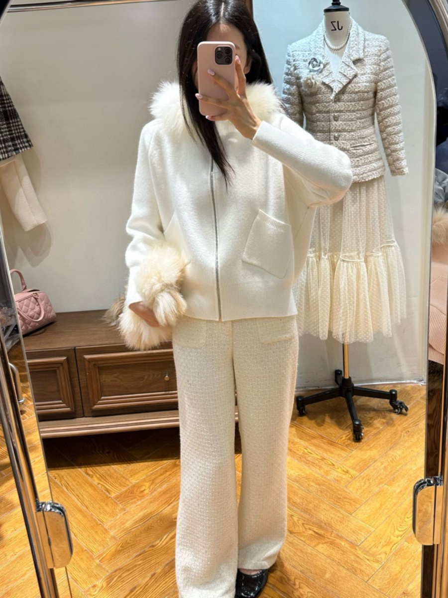 小奶狐复活款粉色小狐狸连帽白色针织卫衣大毛领短款百搭外套女