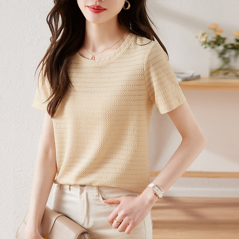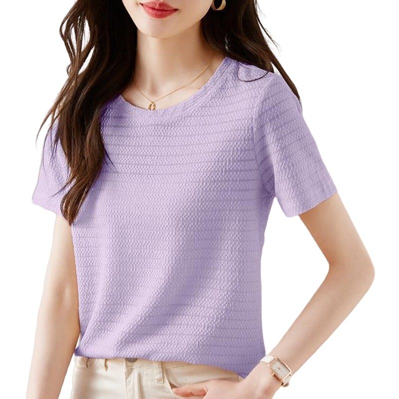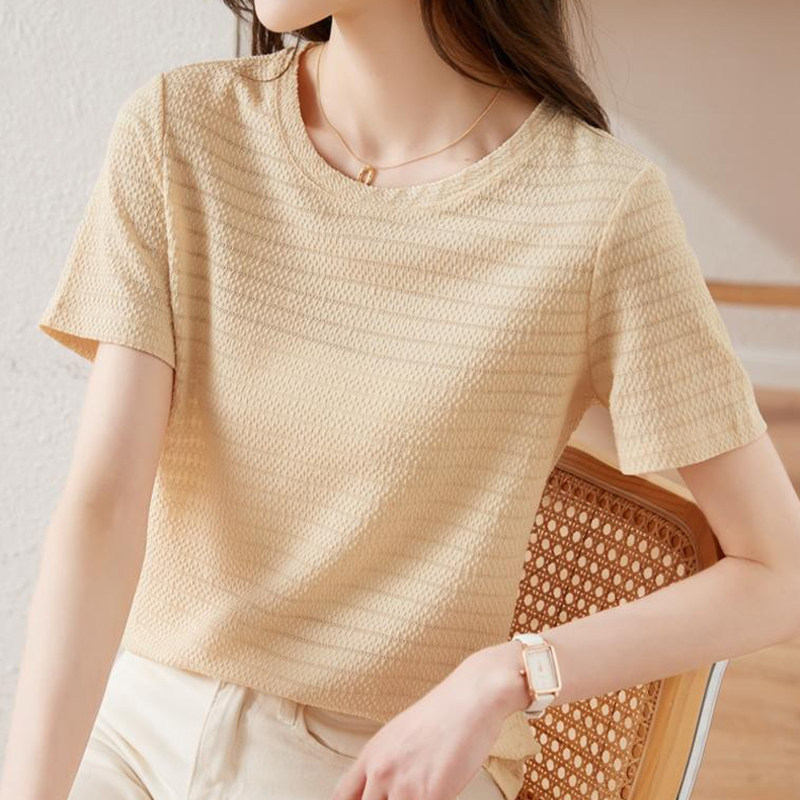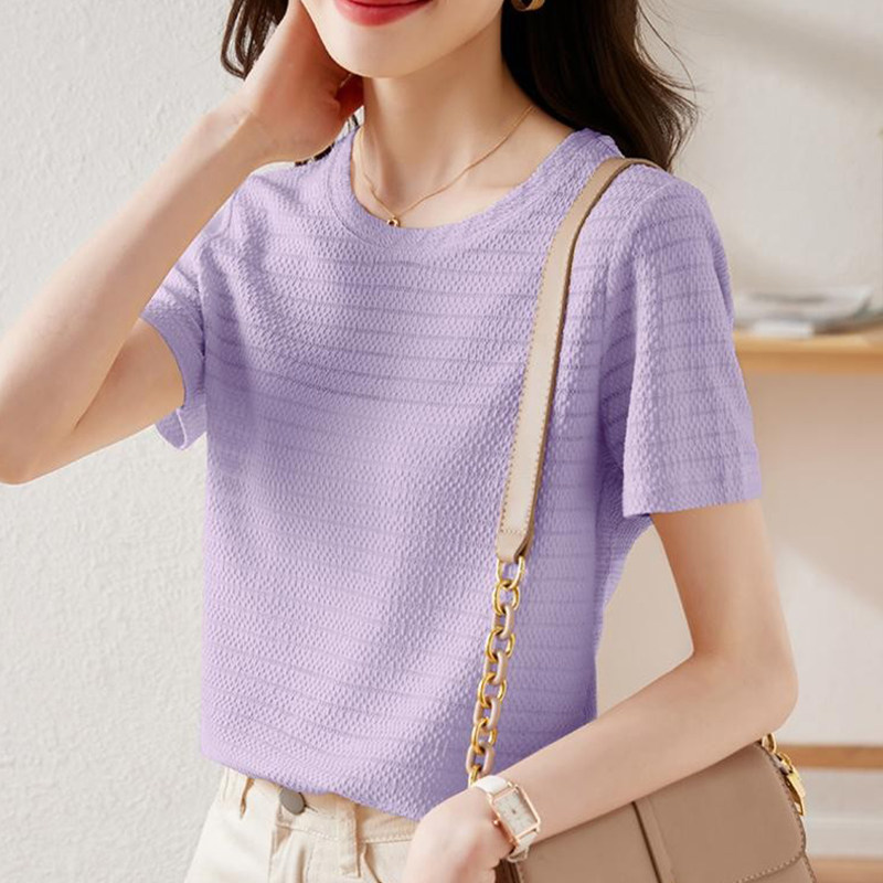 肌理感条纹提花t恤女夏季2025新款高级感镂空短袖雪纺衫显瘦上衣