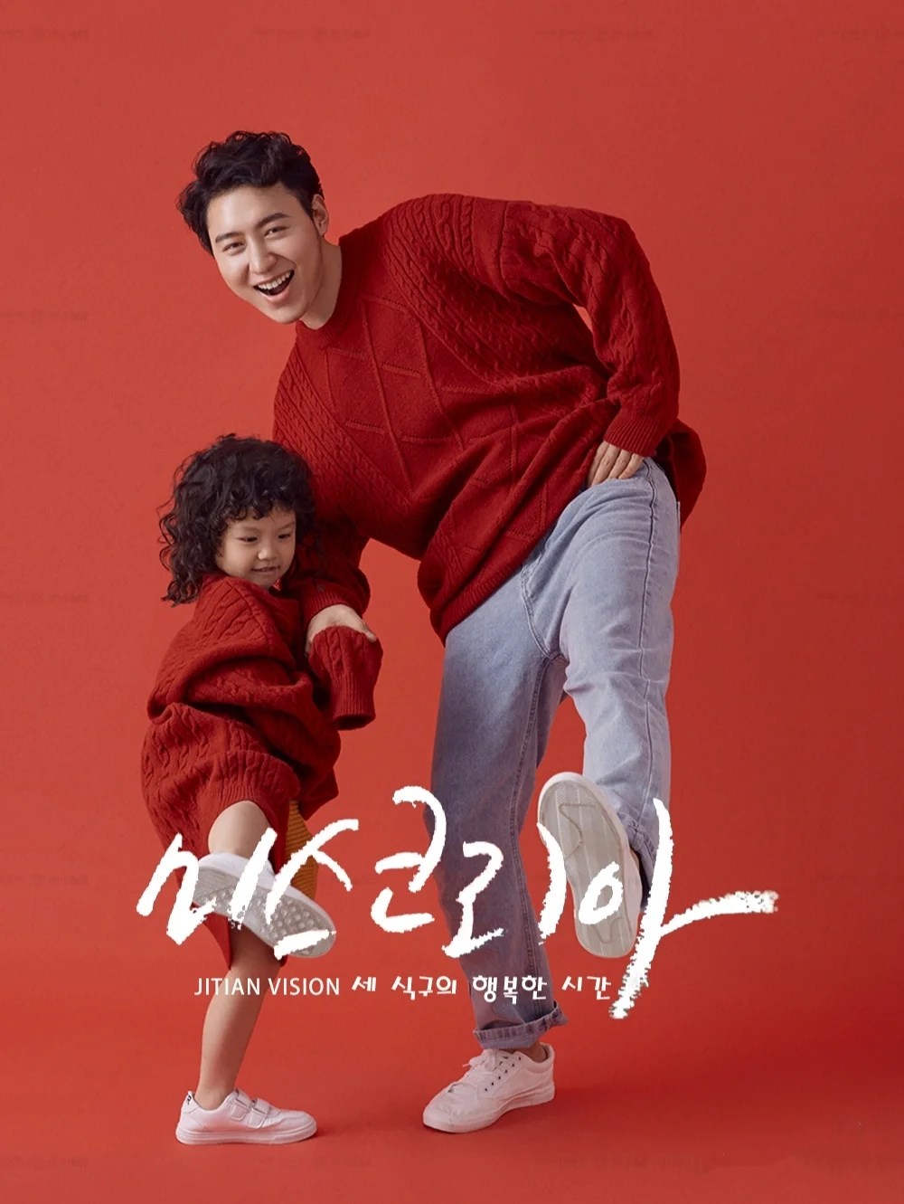 网红款亲子摄影主题照相服装影楼全家福新年红色麻花毛衣拍照童装