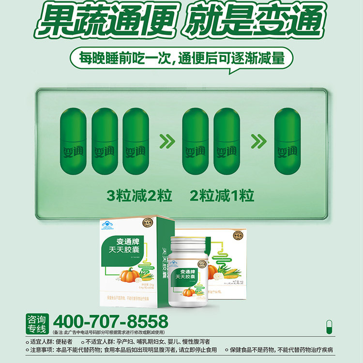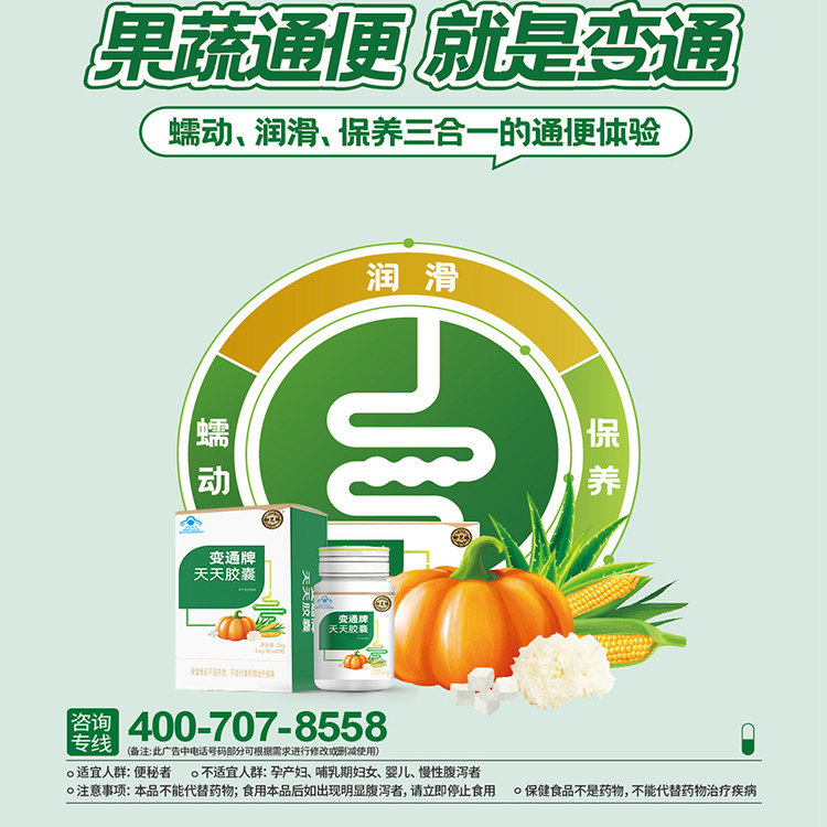 御芝林变通牌天天胶囊300粒60便秘润肠通便便通胶囊南瓜润滑芦荟