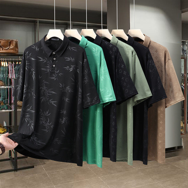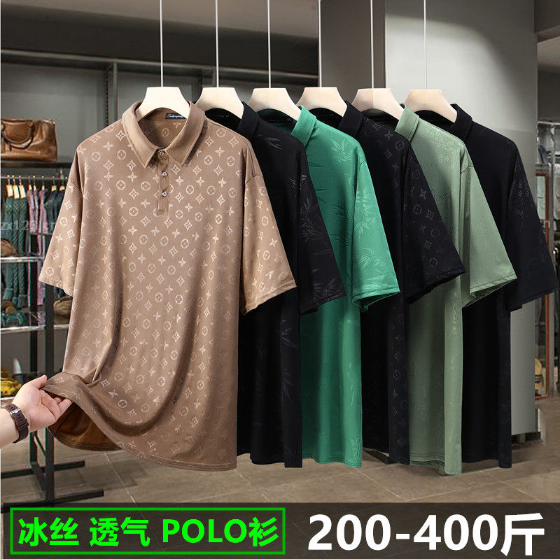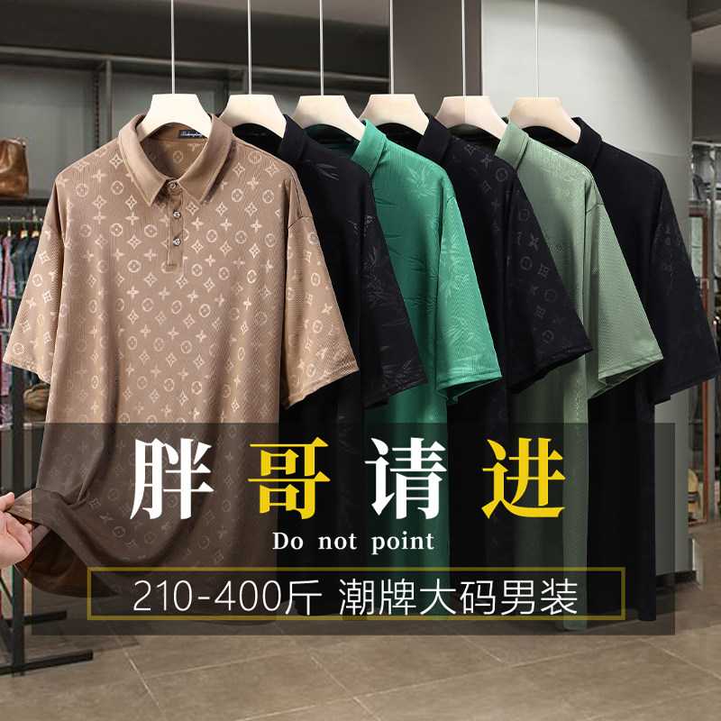 400斤显瘦冰丝特大码polo衫男士加肥加大翻领短袖T恤夏季宽松上衣