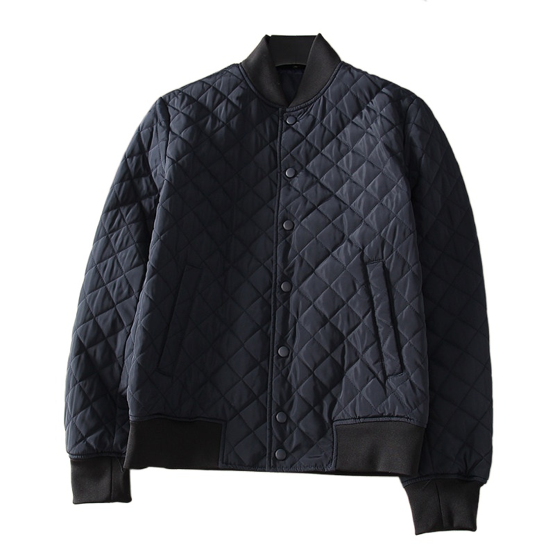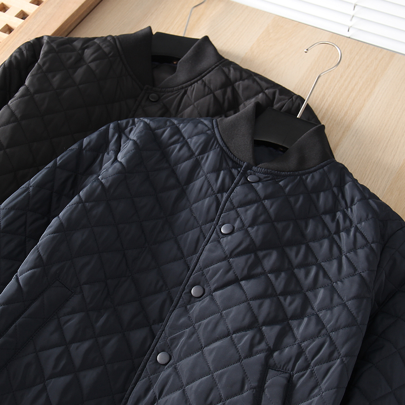 德糸小众!菱形格夹棉外贸男士棒球领休闲夹克保暖时尚打底外套