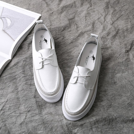 2019春季韩版小白鞋女松糕底女鞋厚底学生百搭白鞋系带女真皮单鞋
