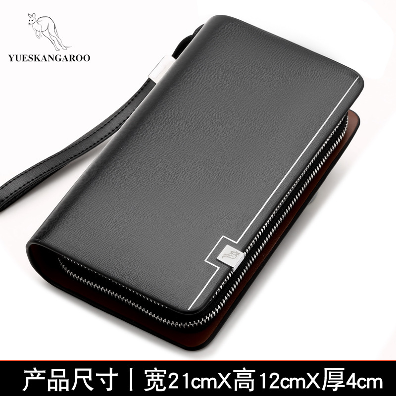 麦克袋鼠男士手拿包商务2025新款牛皮钱夹包大容量手包长款钱包