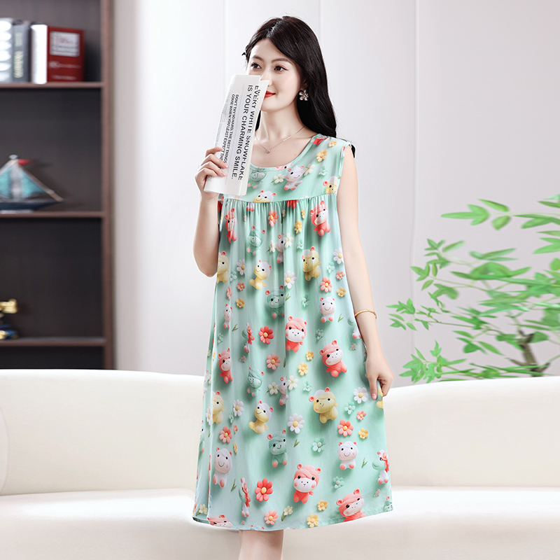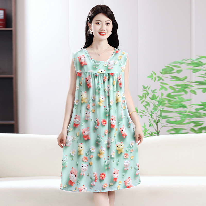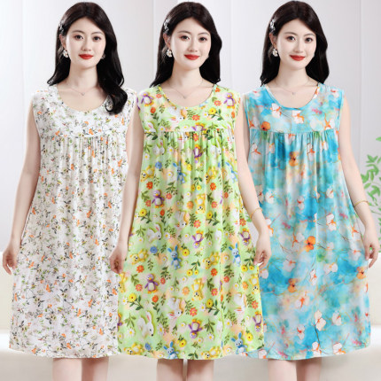 棉绸睡裙女士夏季薄款无袖背心2025新款睡衣人造棉家居服连衣裙
