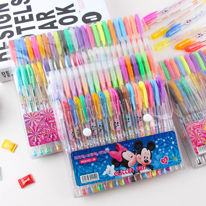 儿童48色彩色闪光笔学生闪光彩色笔荧光笔水粉笔亮晶晶画画涂鸦笔