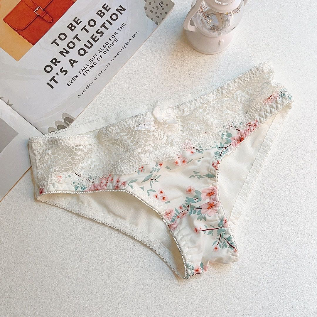 「花漾情话」日系碎花甜美蕾丝性感大码三角裤薄款透气网纱内裤女