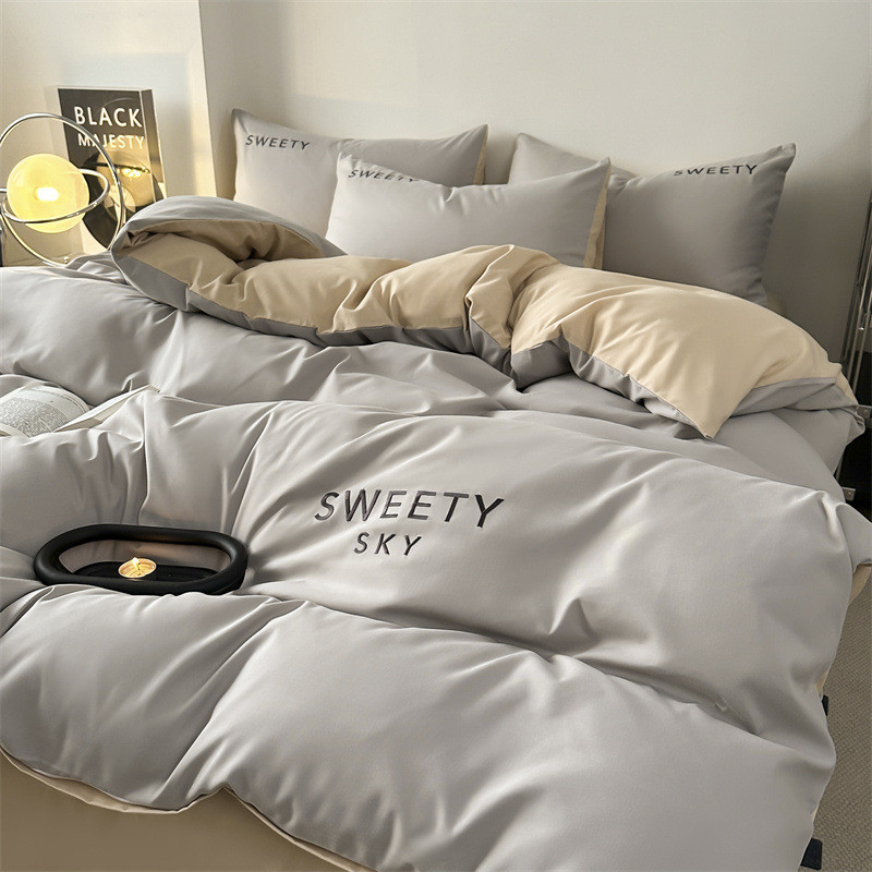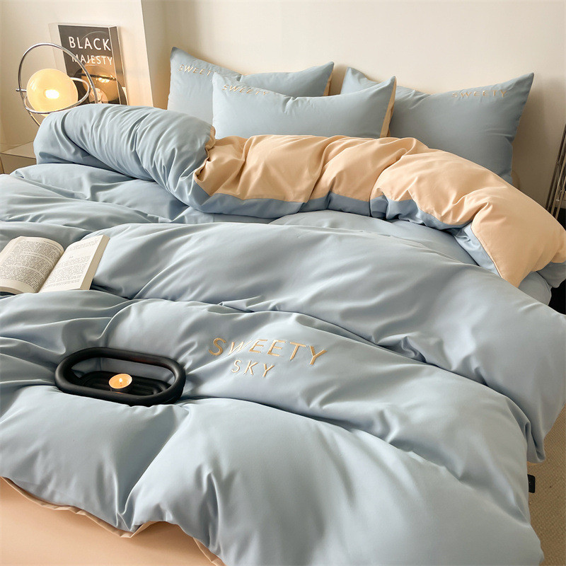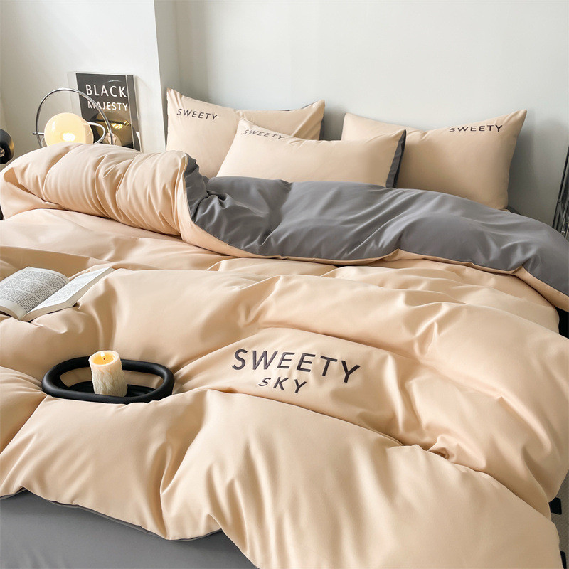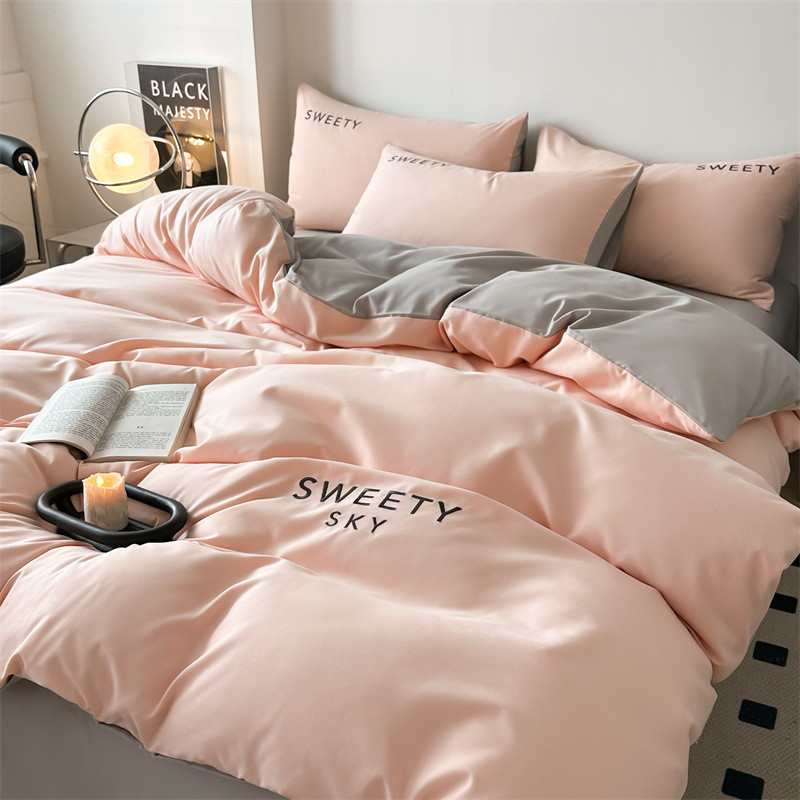 现代简约水洗棉磨毛亲纯色四件套肤被套床单宿舍床笠款三件套批发