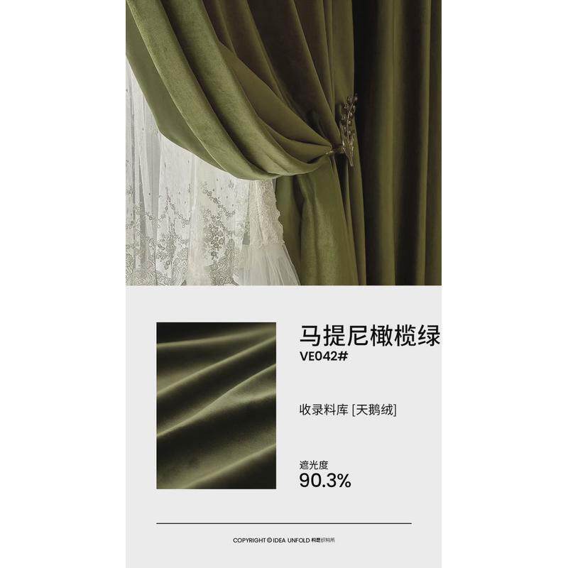 si6k辑/35橄榄绿墨绿色丝绒窗帘轻奢复古2023遮光新款客厅卧室年
