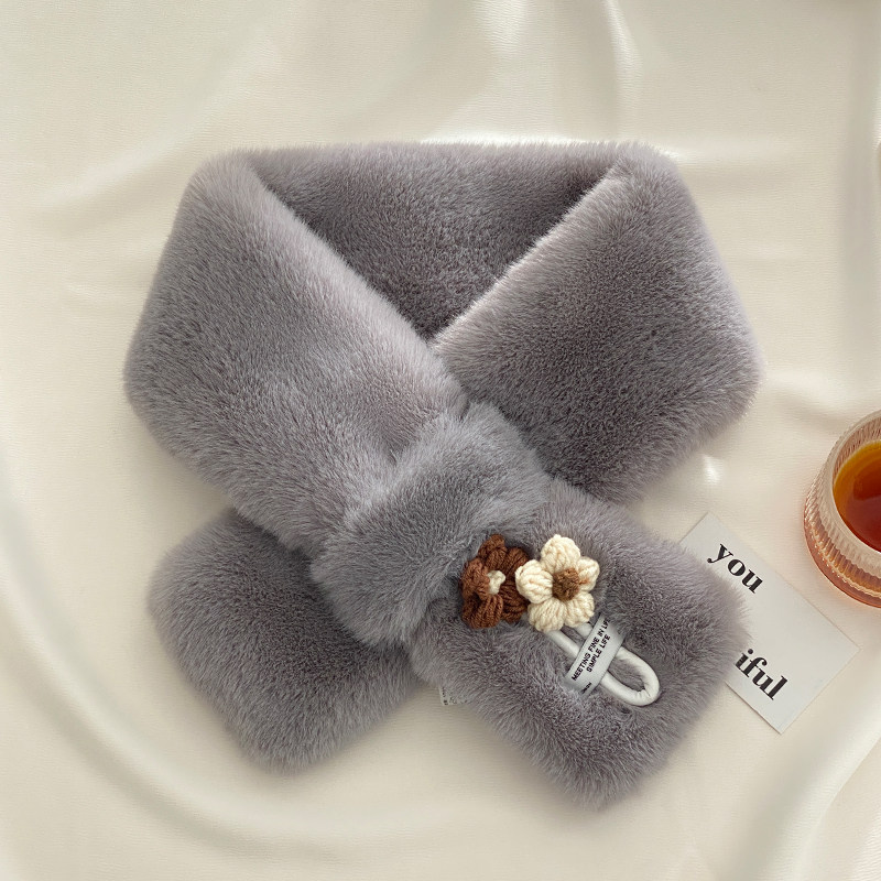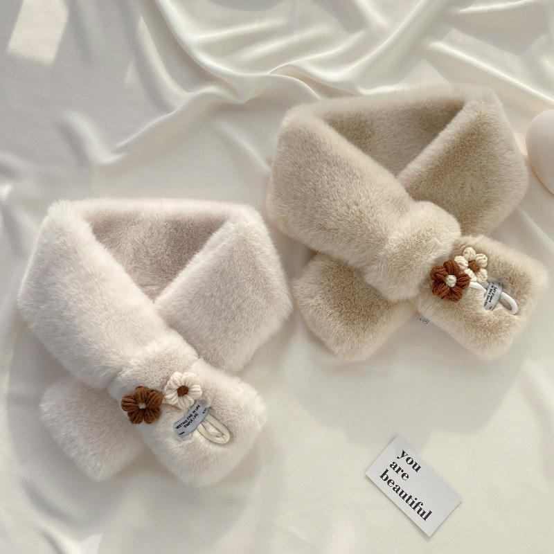 可爱小花毛绒毛领围巾女冬季防寒加厚保暖护颈小围脖仿獭兔毛交叉