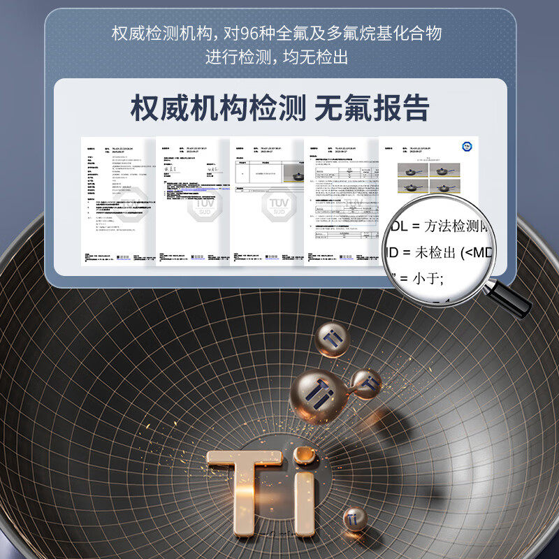 爱仕达不粘锅无涂层炒锅家用有钛炒菜锅燃气灶电磁炉平底锅钛锅