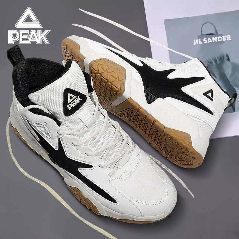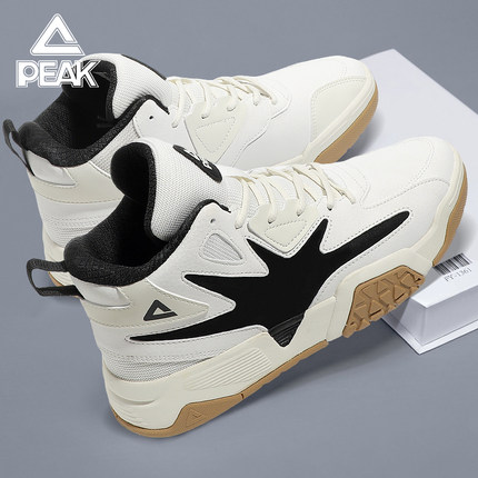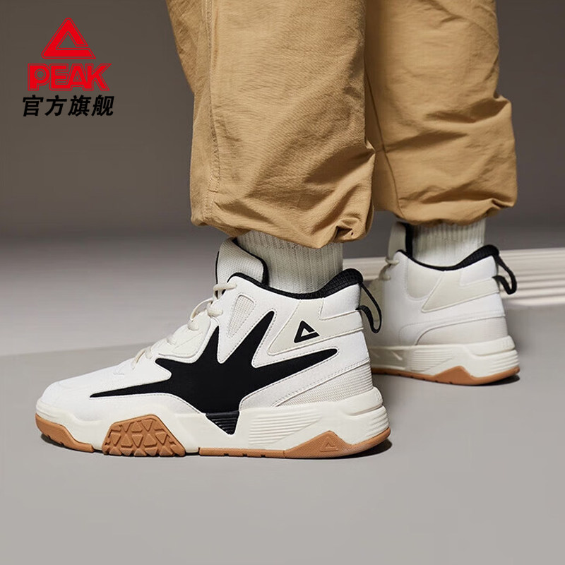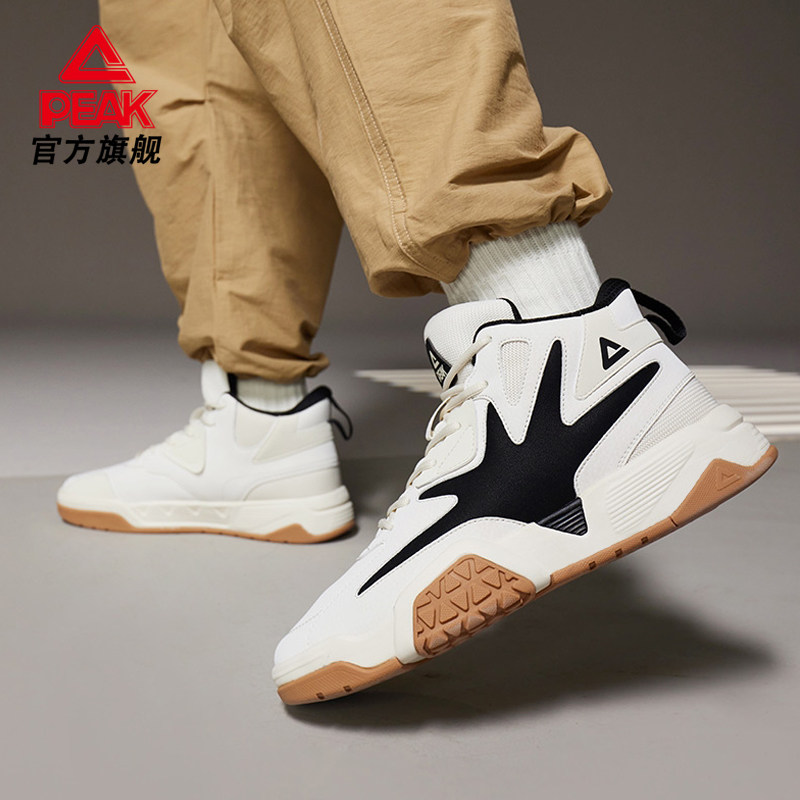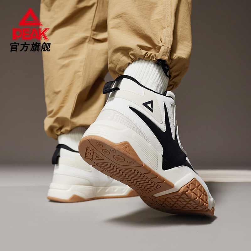 匹克板鞋男鞋冬季新款高帮轻便防滑耐磨白色简约皮面运动鞋小白鞋