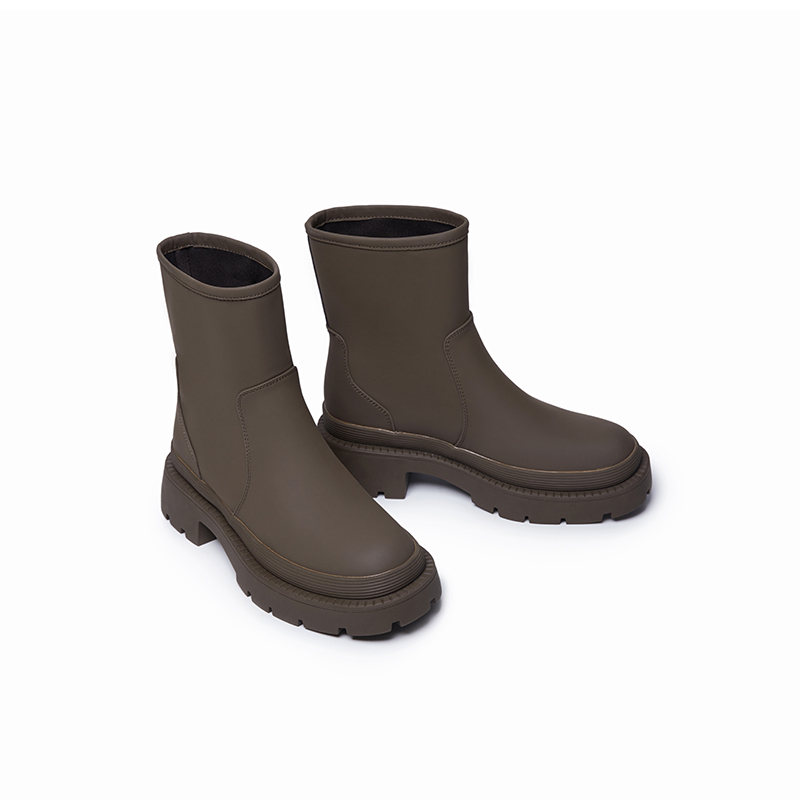 红蜻蜓定制MP女单鞋中筒靴女粗跟时尚靴中跟马丁靴皮靴女单靴