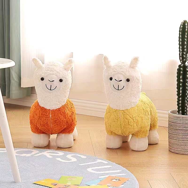网红创意羊驼凳客厅落地小板凳儿童家用换鞋凳毛绒凳新居沙发凳子