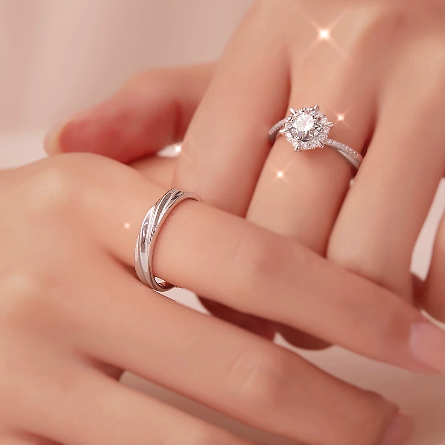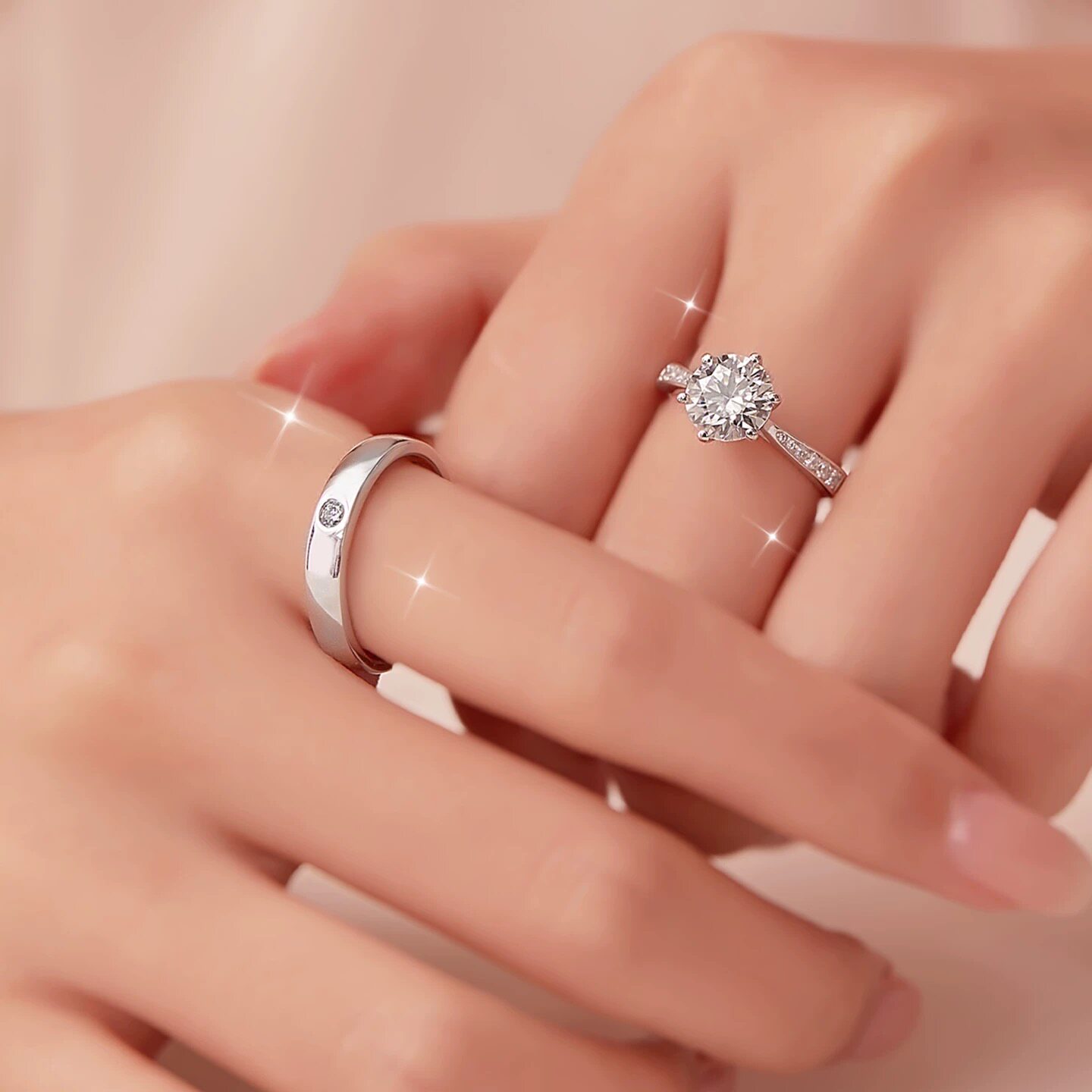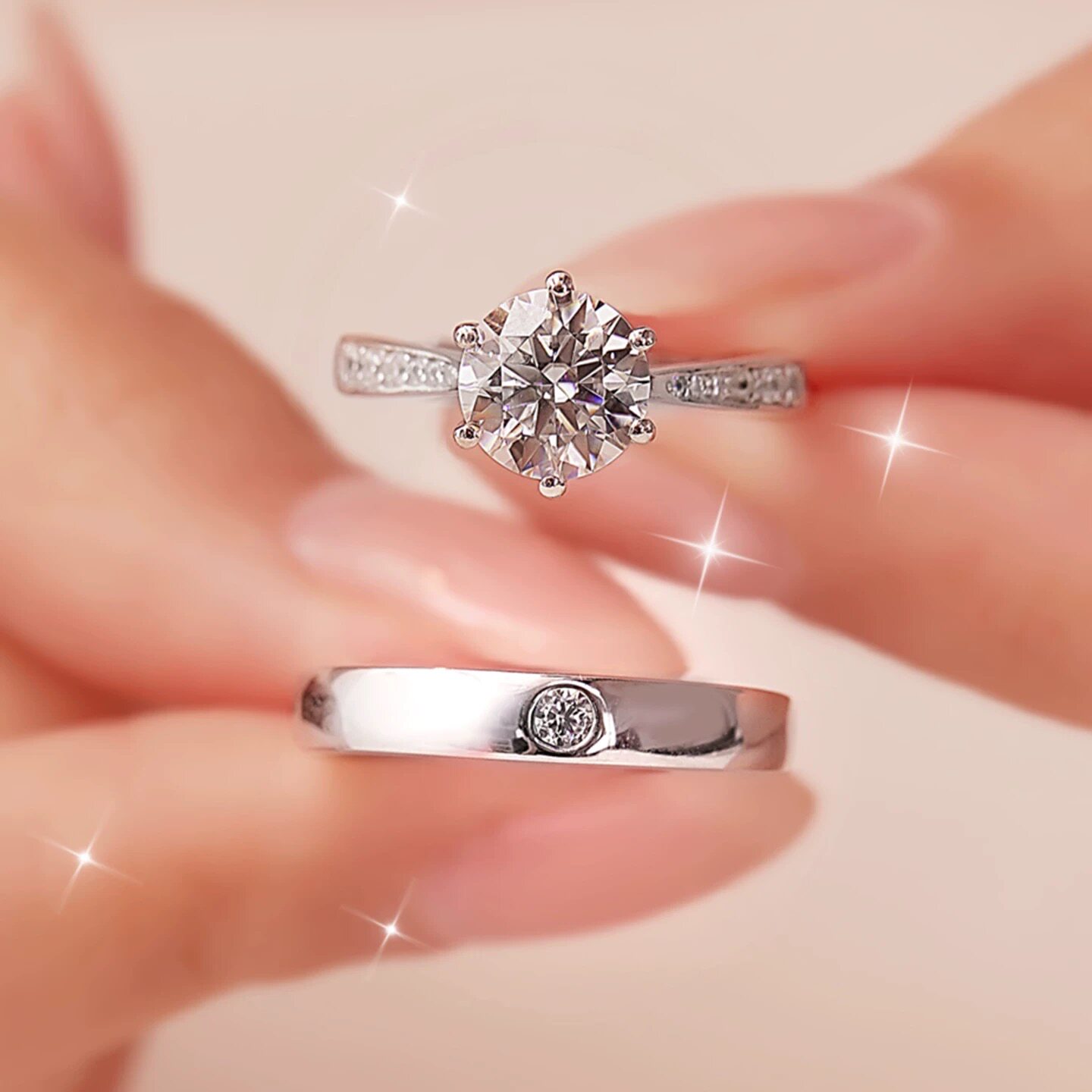 情侣对戒1克拉仿真钻戒女结婚一对求婚婚戒钻石戒指婚礼可调节
