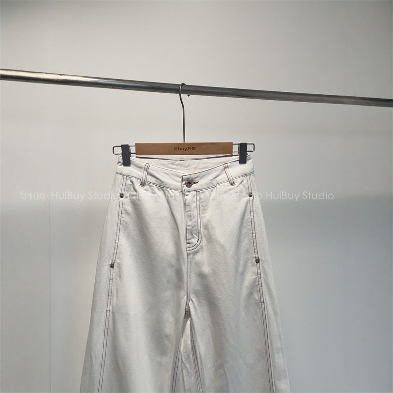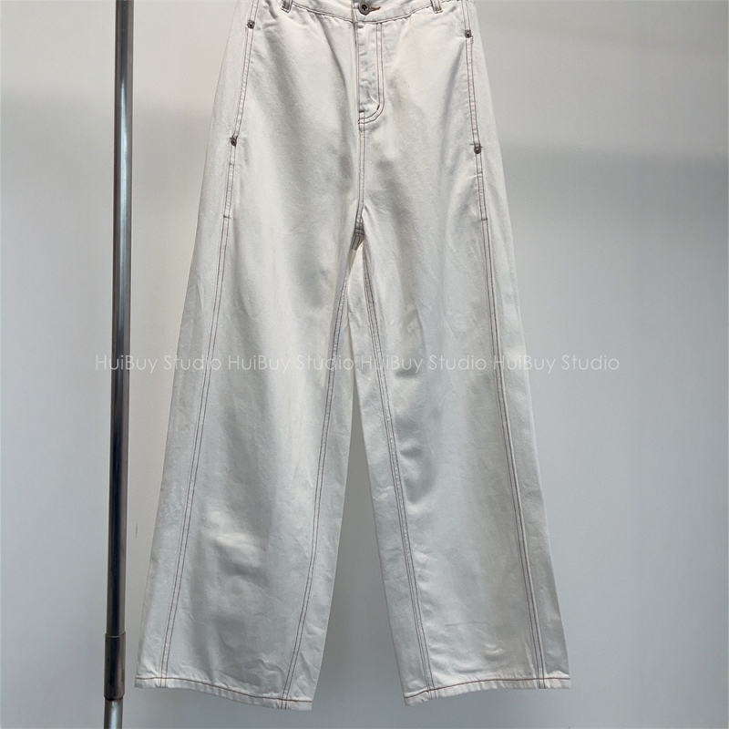 高端女裤!高腰垂感无弹阔腿牛仔裤女早春新款宽松白色直筒拖地裤