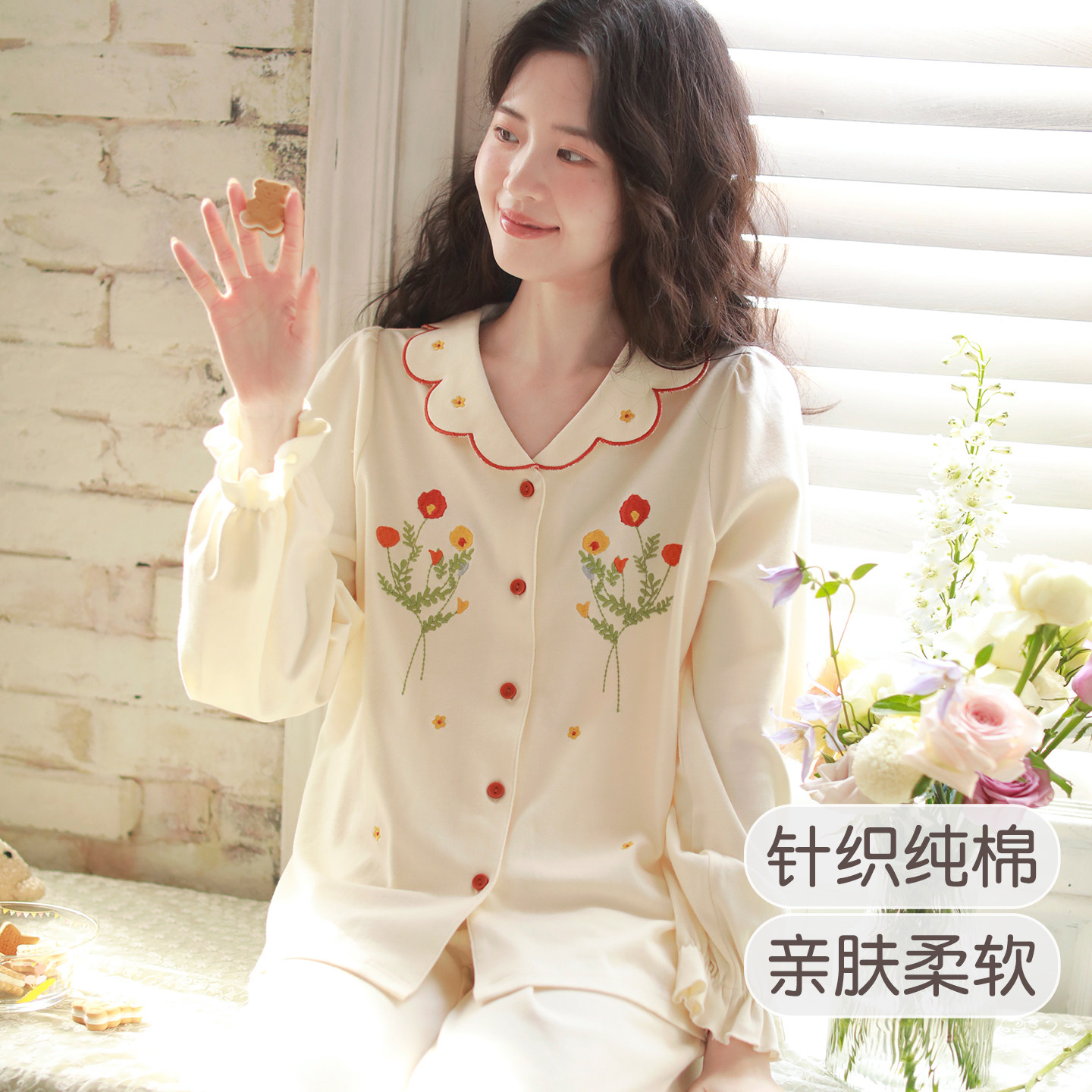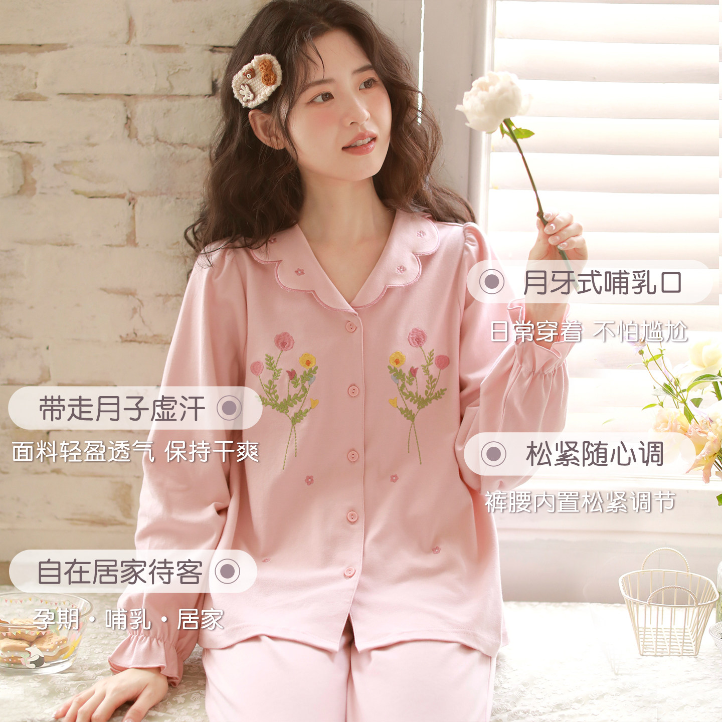 富朵月子服春秋孕妇纯棉针织睡衣产后哺乳衣待产可外穿家居服套装