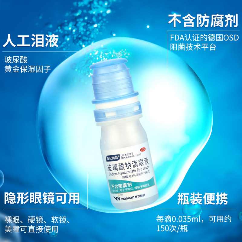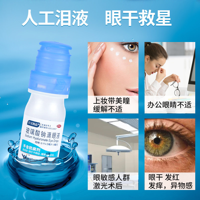 万汉润晶玻璃酸钠滴眼液人工泪液干眼症眼睛干涩缓解疲劳隐形眼镜