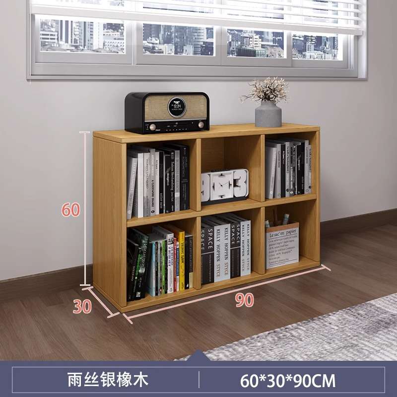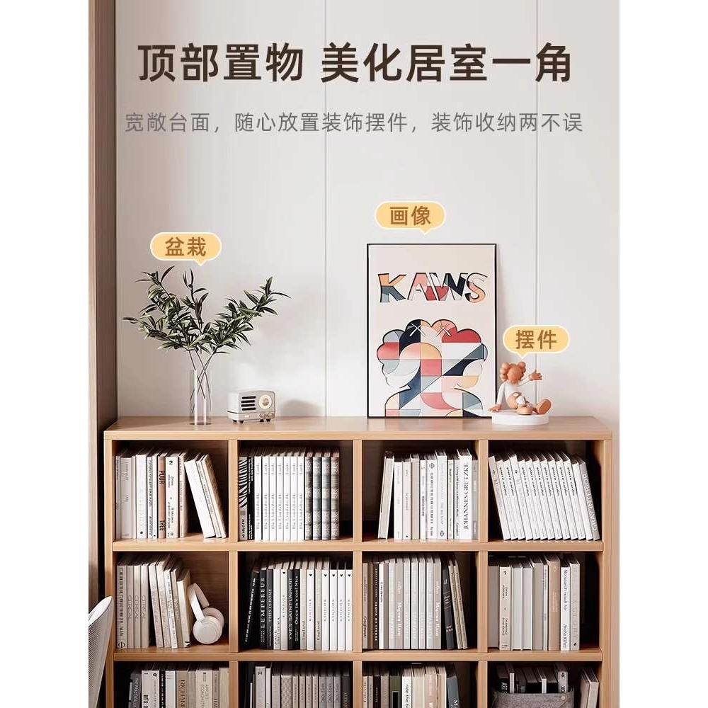 简易书架置物架落地储物格子柜客厅实木色小书本收纳阅读架矮书柜