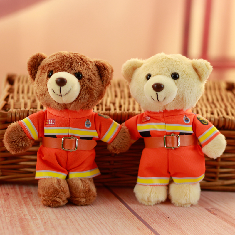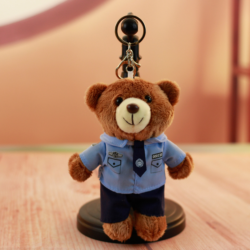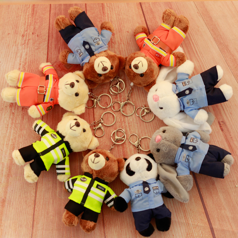 警察小熊挂件公仔铁骑交警熊钥匙扣包包装饰玩偶兔子消防小熊吊饰