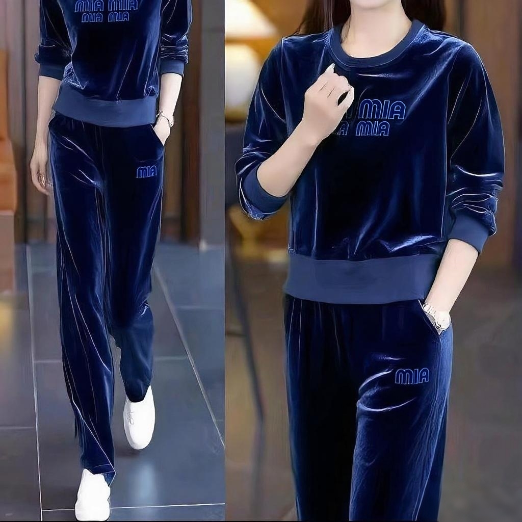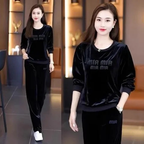 金丝绒运动服套装女2025秋冬季新款时尚休闲圆领卫衣阔腿裤两件套